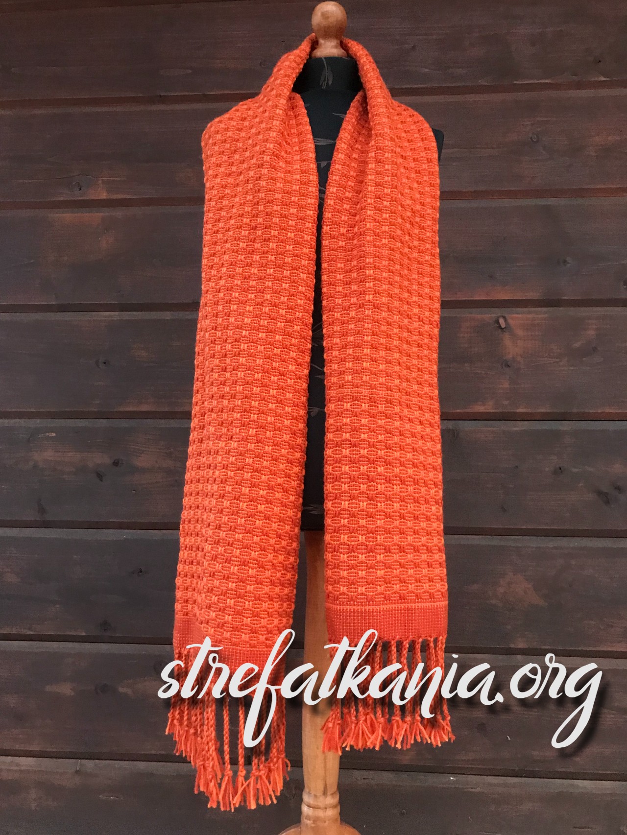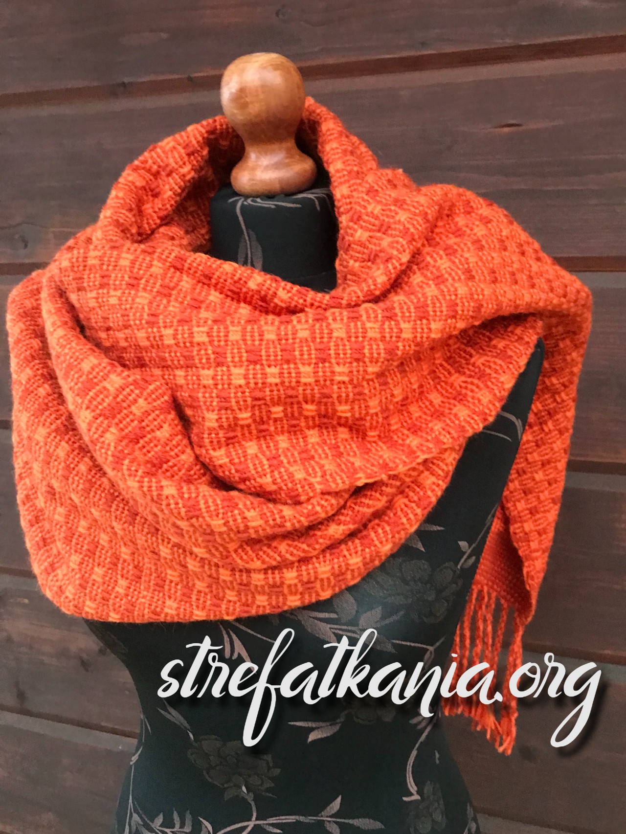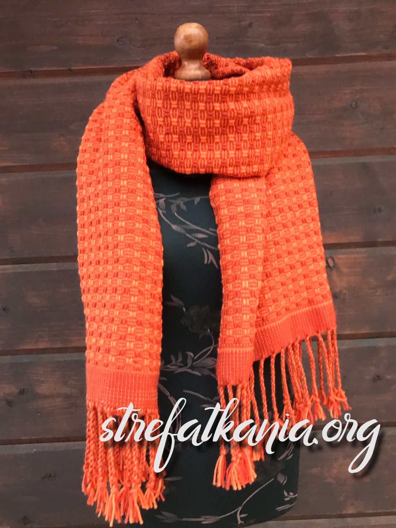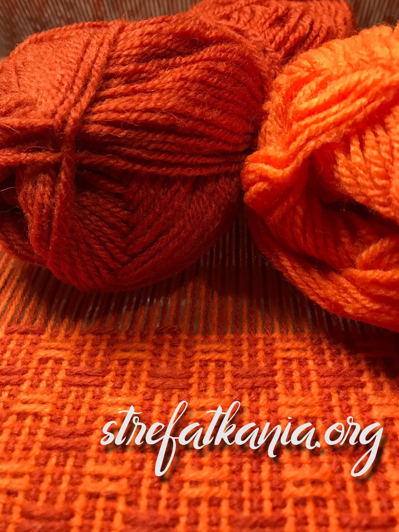 W mojej pracy zastosowałam przędzę wełnianą w kolorze pomarańczowym i rudym.