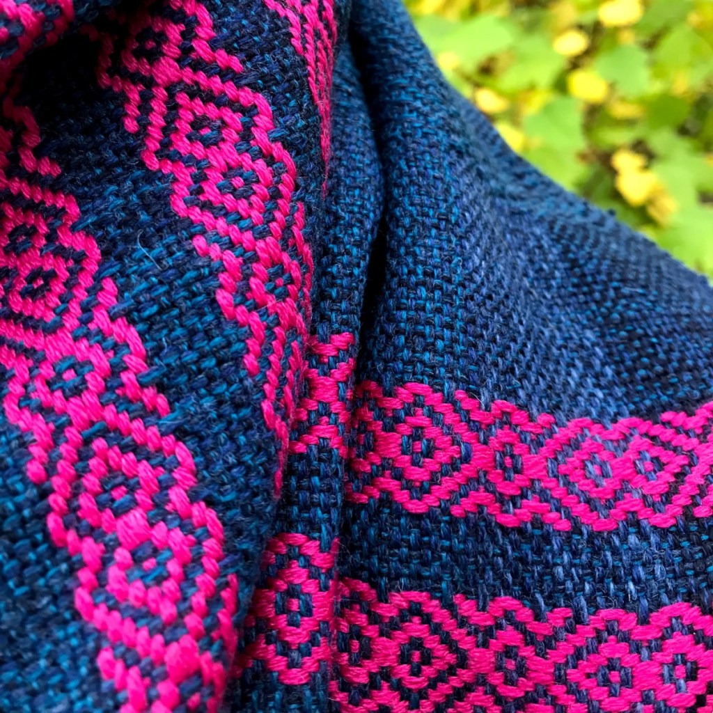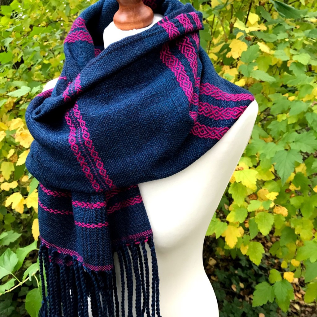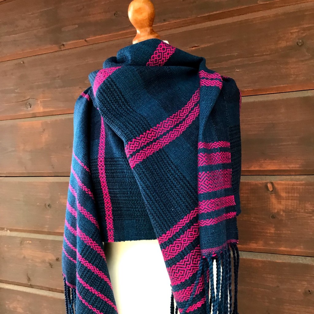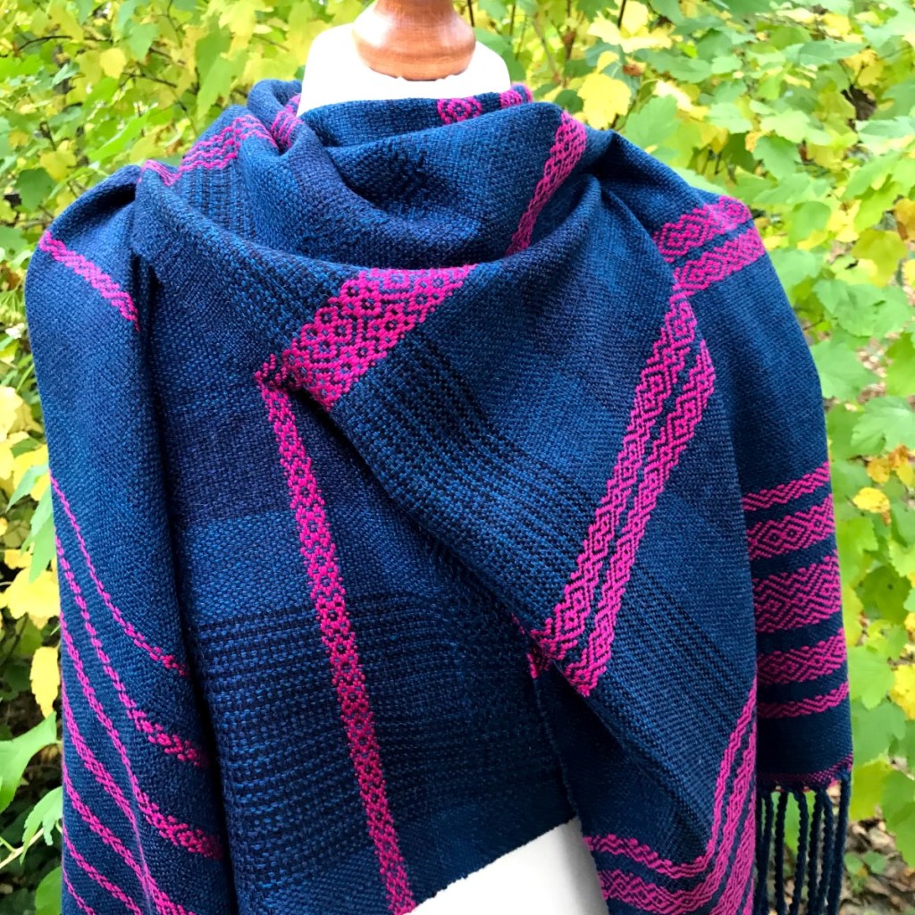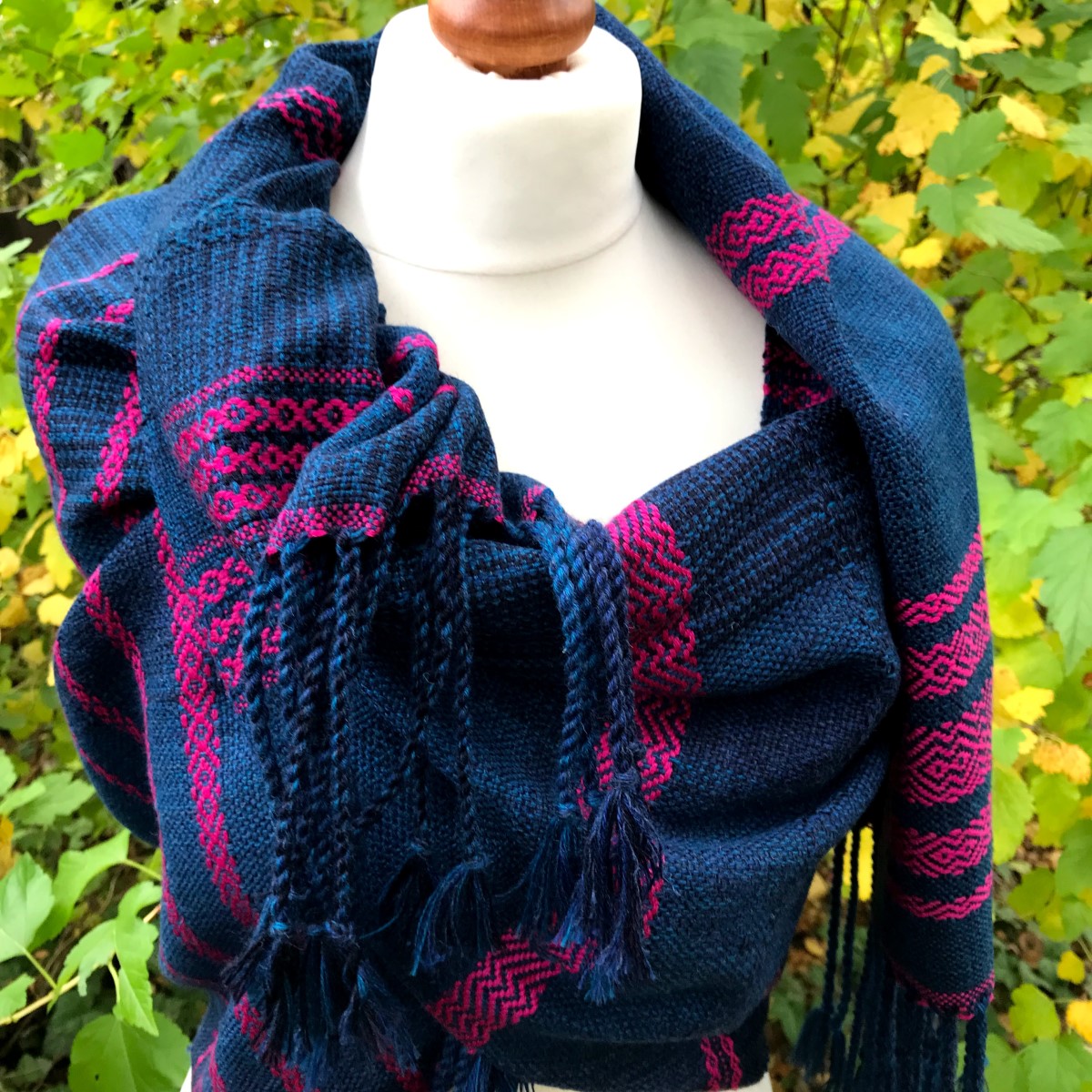 Oto mój nowy szal „Noc Kairu”, Nazwałam go tak, ponieważ ciemnogranatowa barwa przypomina mi rozwiedzione niebo dokładnie tak samo jak kamień Noc Kairu który zwany jest kamieniem czarnoksiężników lub kamieniem nocy.