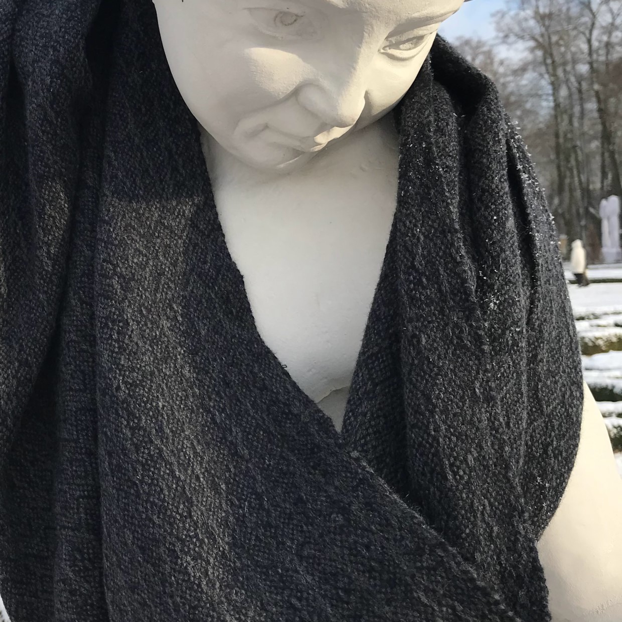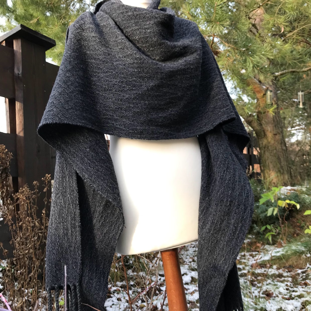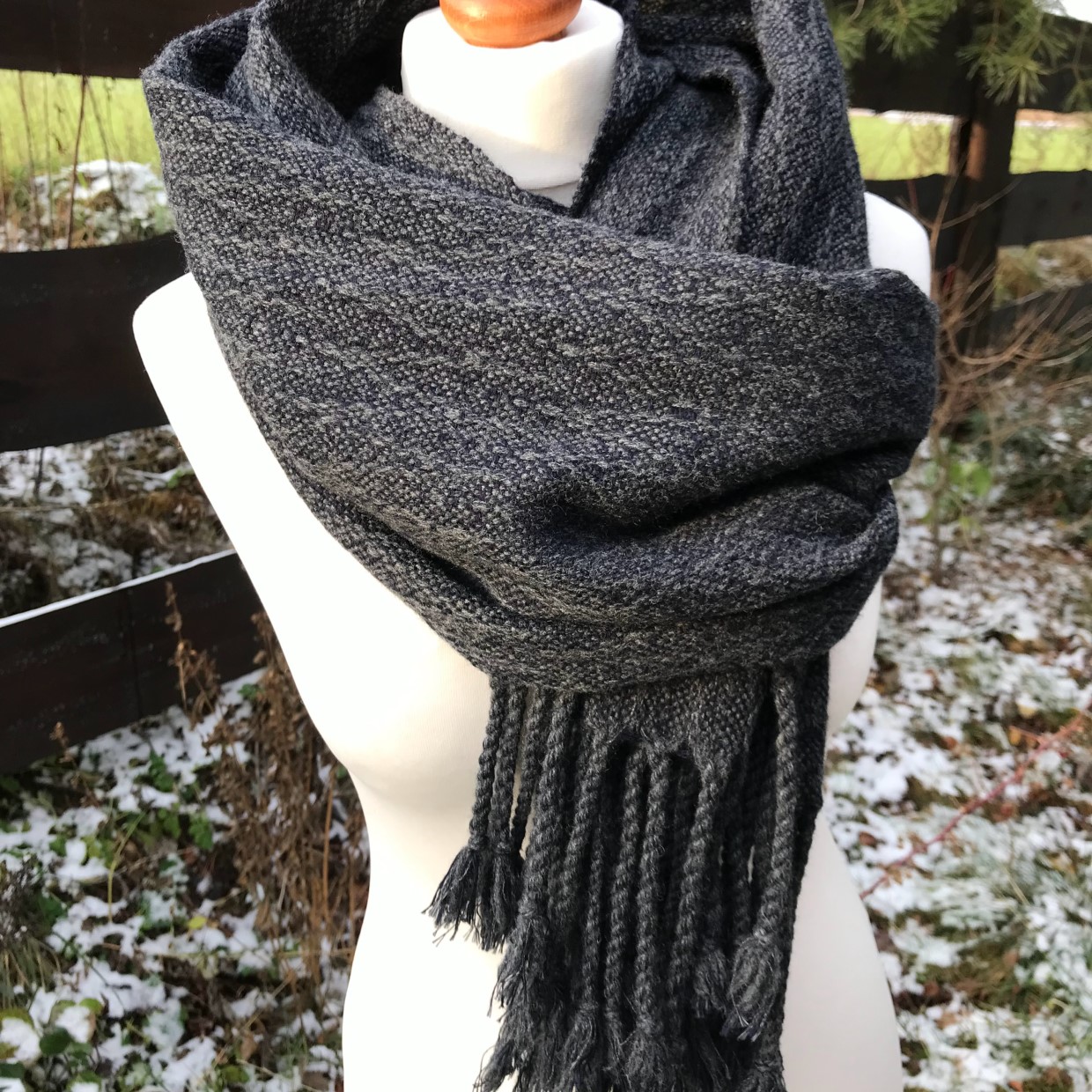 Kolorystyka spokojna, piekny antracyt. Wymiary 50 x 200 cm. Wełna merynos.