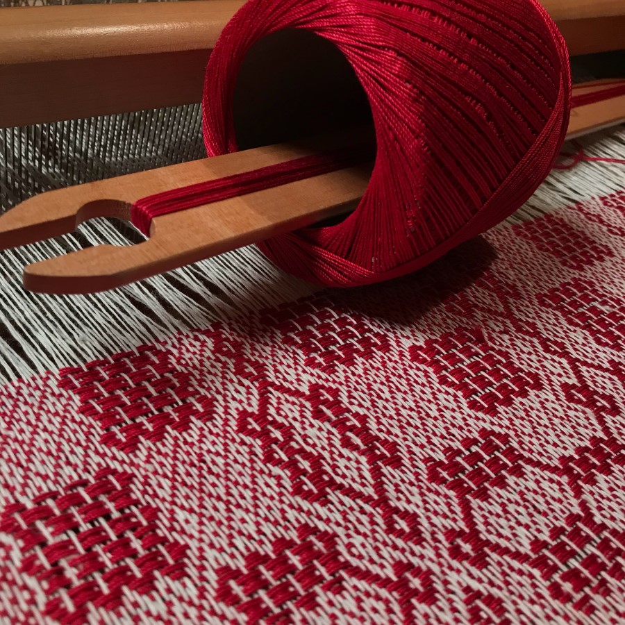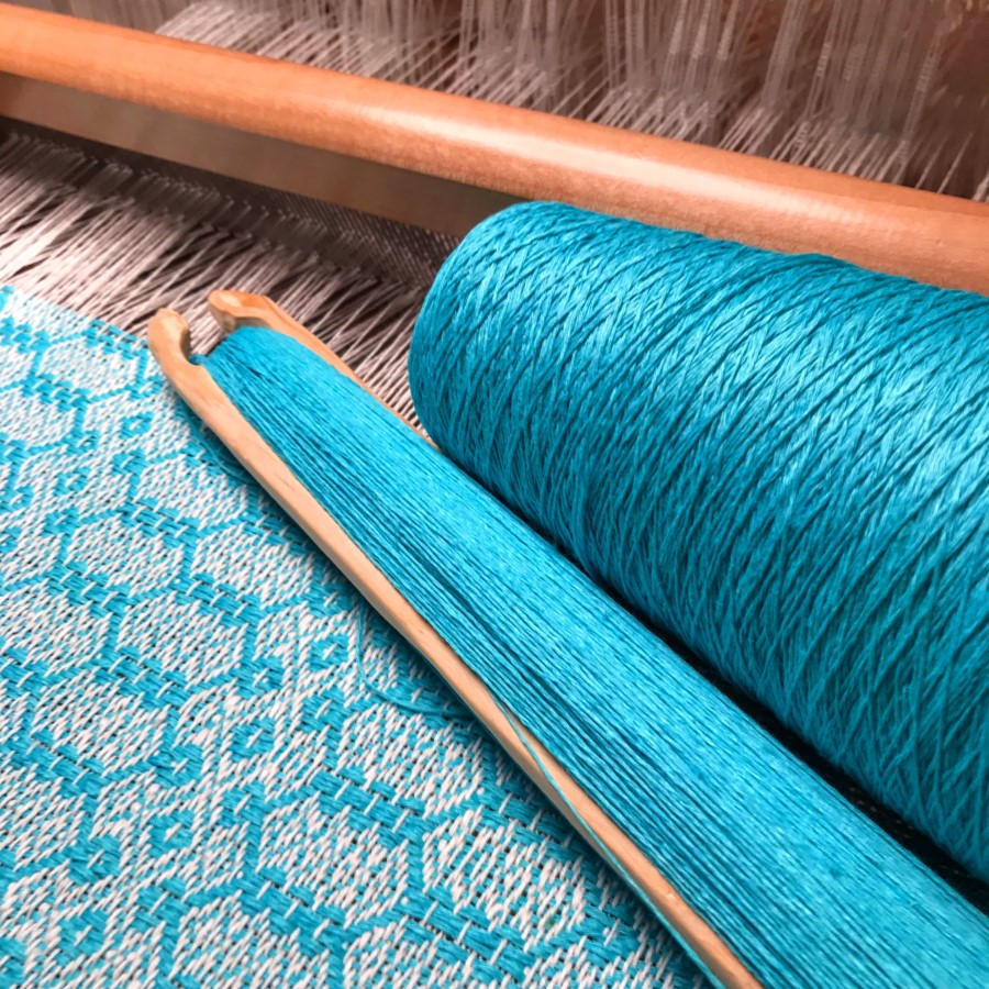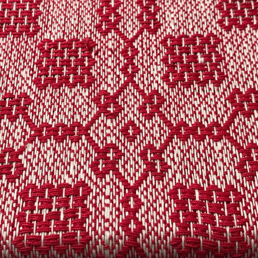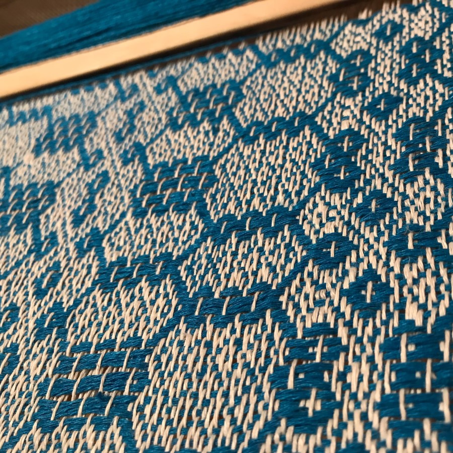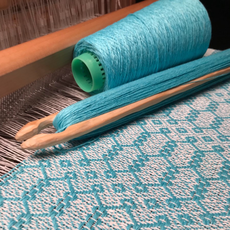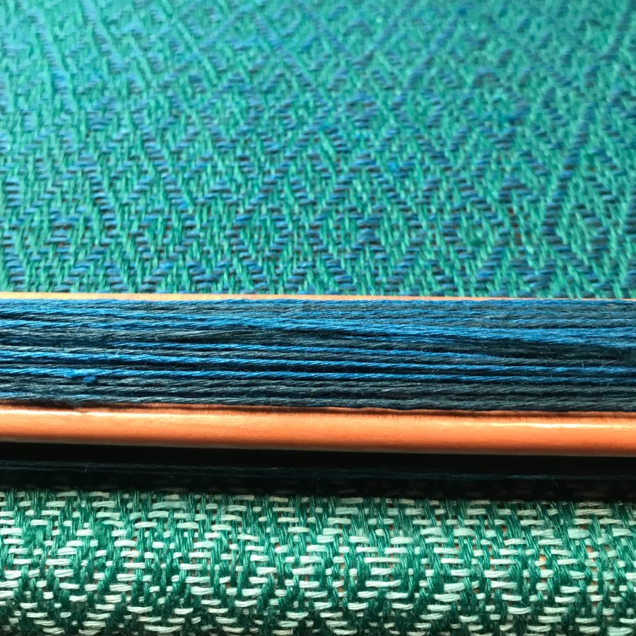 Zakończyłam pewien etap tkania lnem po lnie. Muszę przyznać iż falnie mi się tkała pomimo, iż osnowa się trochę wyciągała. Użyłam lnu 4, gęstość 80 i 90 nici osnowy na 10 cm.