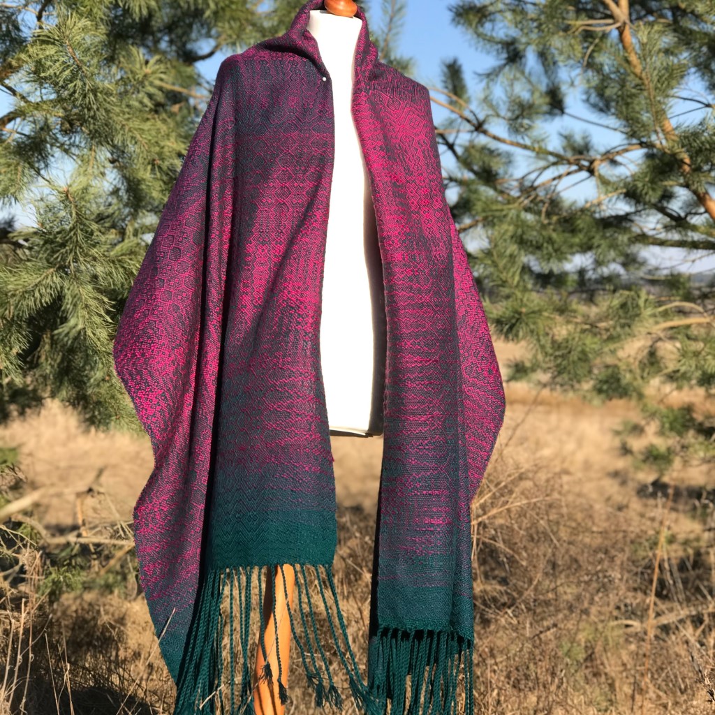 szal – ponczo wełna merynos, szerokość 70xm, długość 220cm + frędzle 20 cm