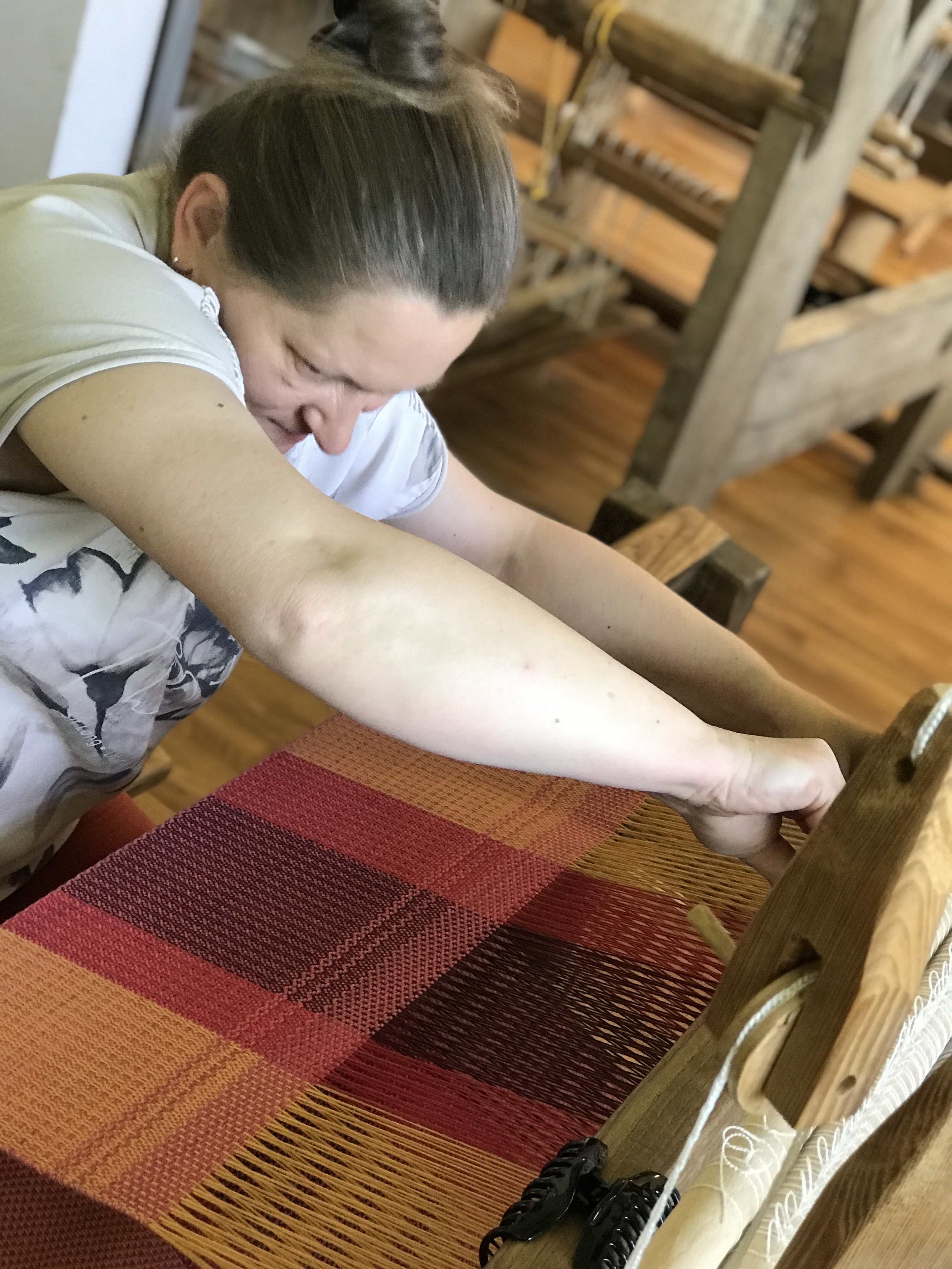 Warsztaty z tkaniny wielonicielnicowej skończyły się. Pozostały wspomnieni ai piekne szale, które dziewczyny zabrały do domu. Jesinią będzie im ciepło i kolorowo.