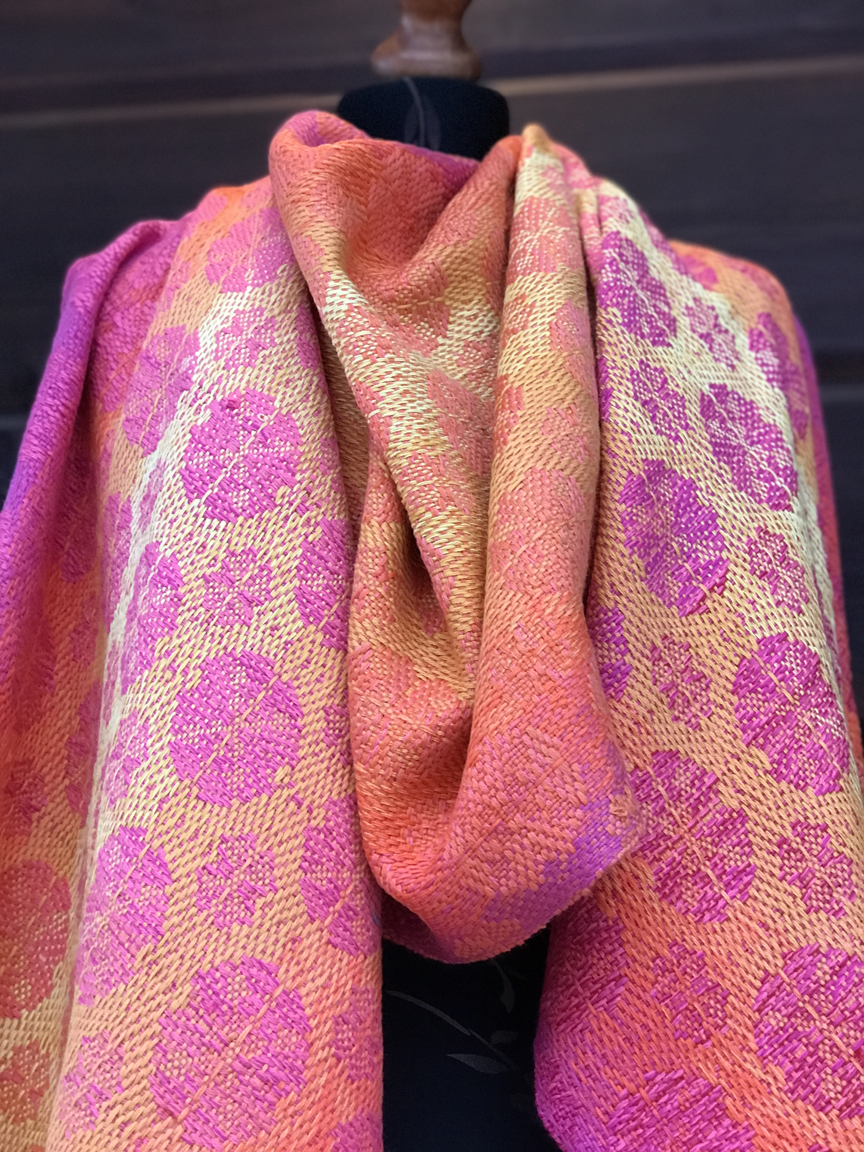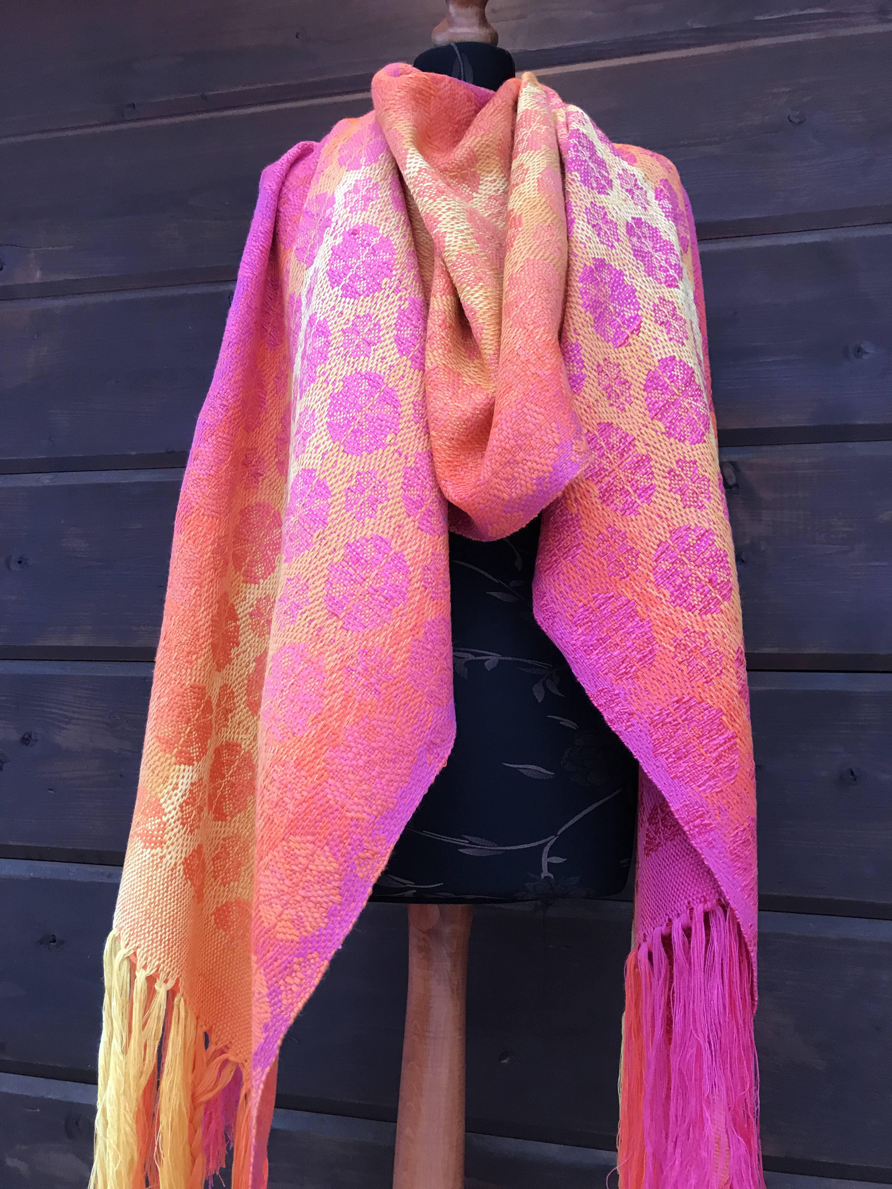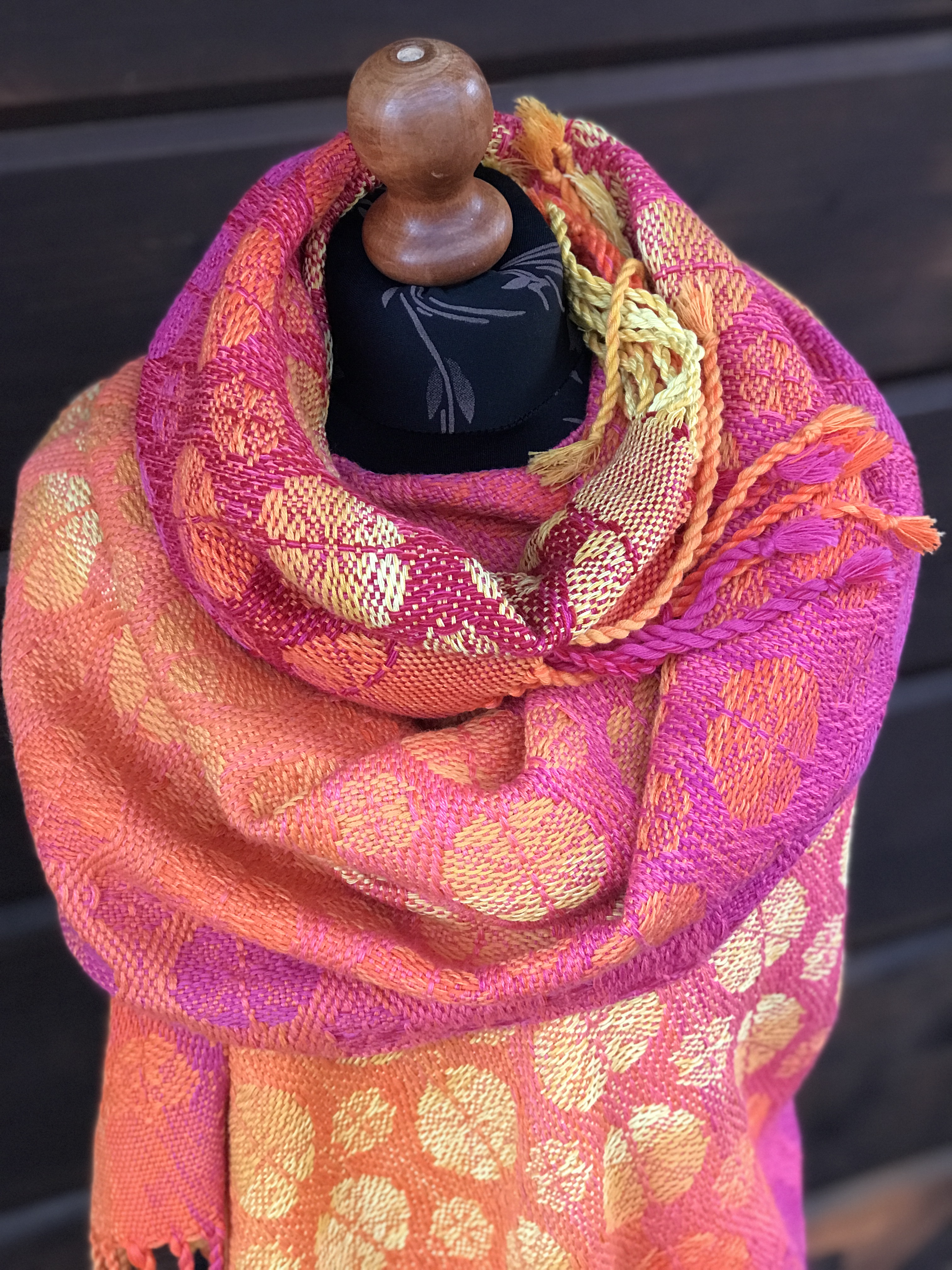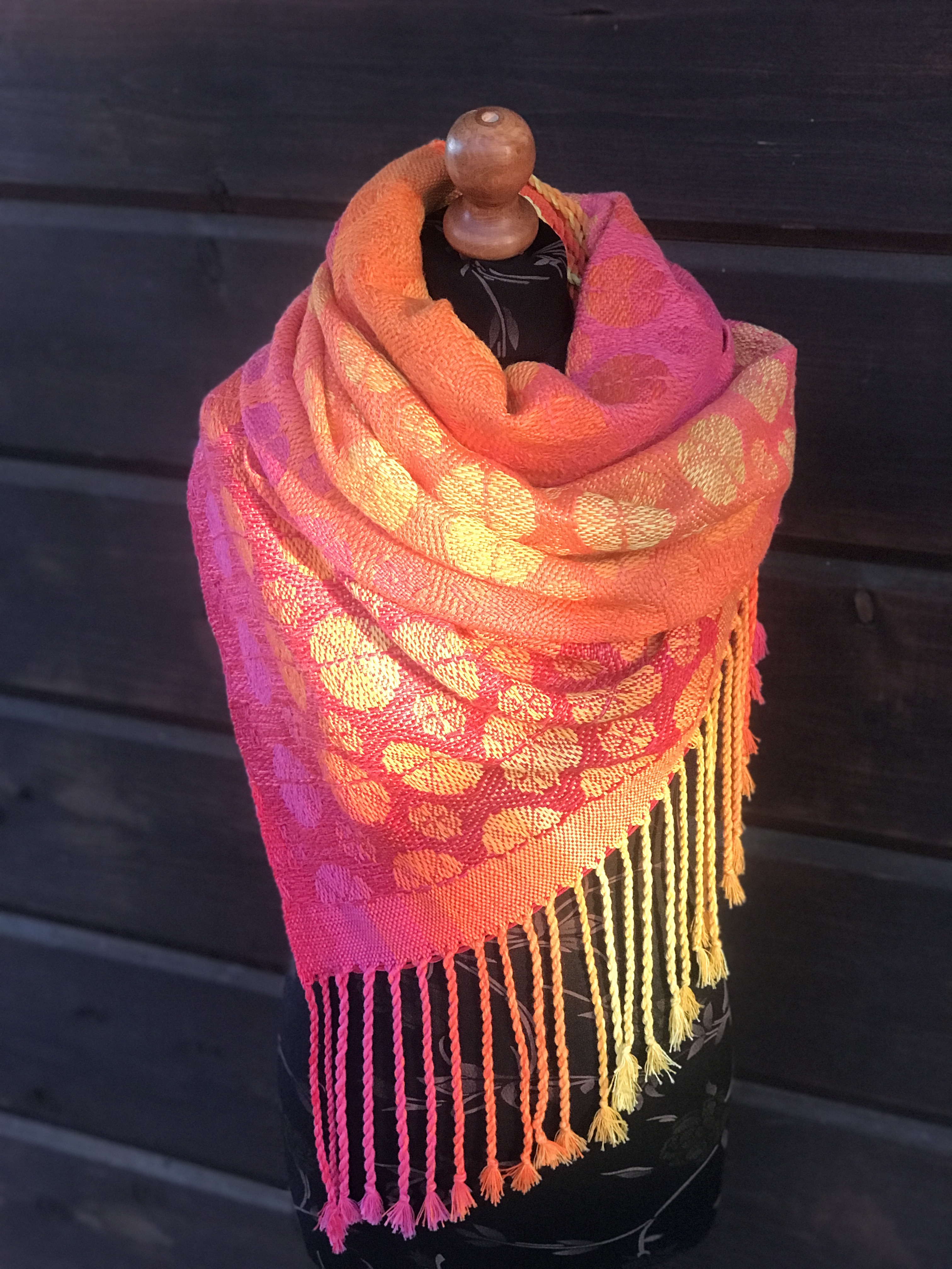 Cytrusowy raj – nowy szal pełen enrgii i witamim. Wytkany ręcznie z miękkiej bawełny orac wełny merynos.