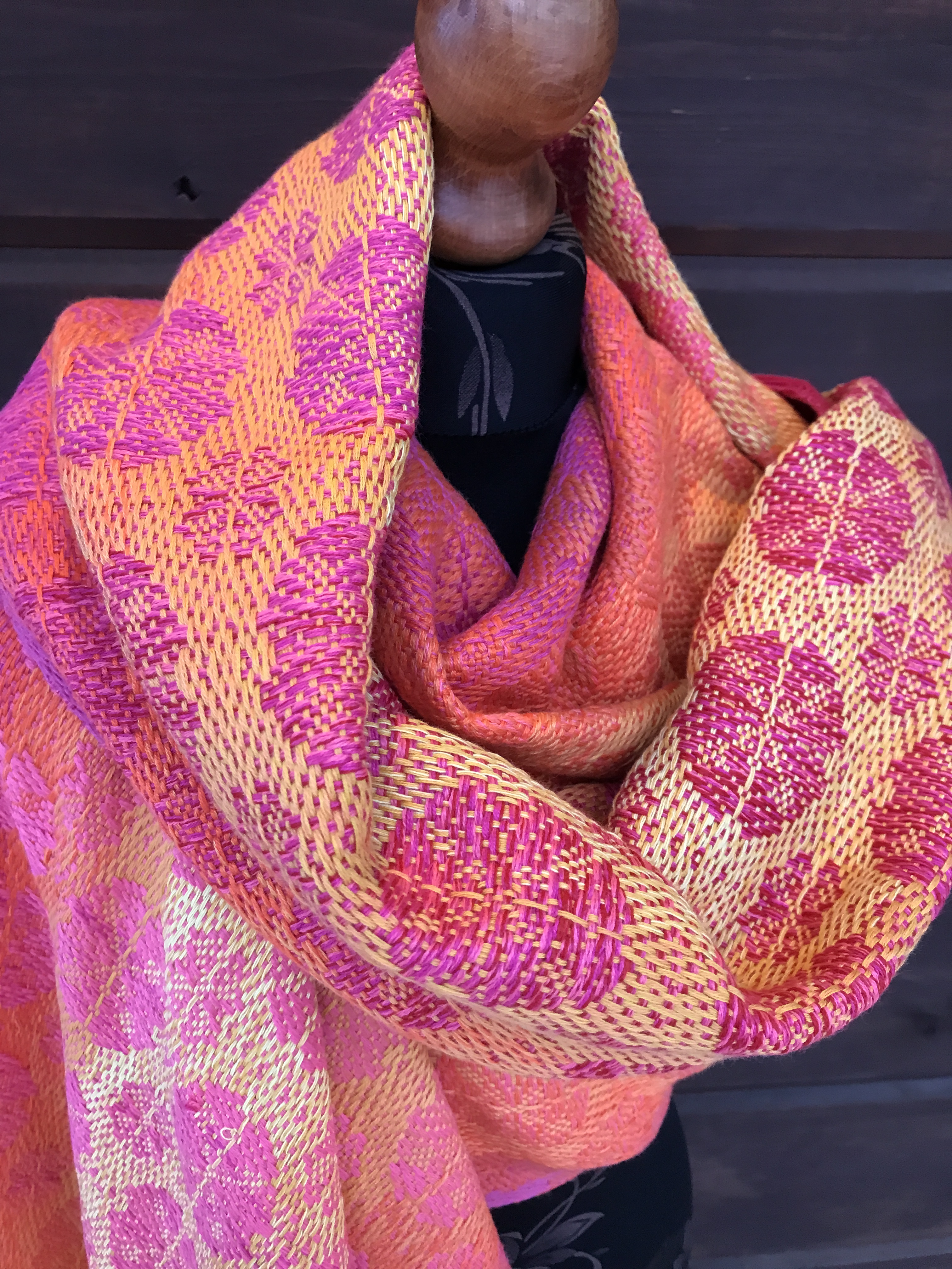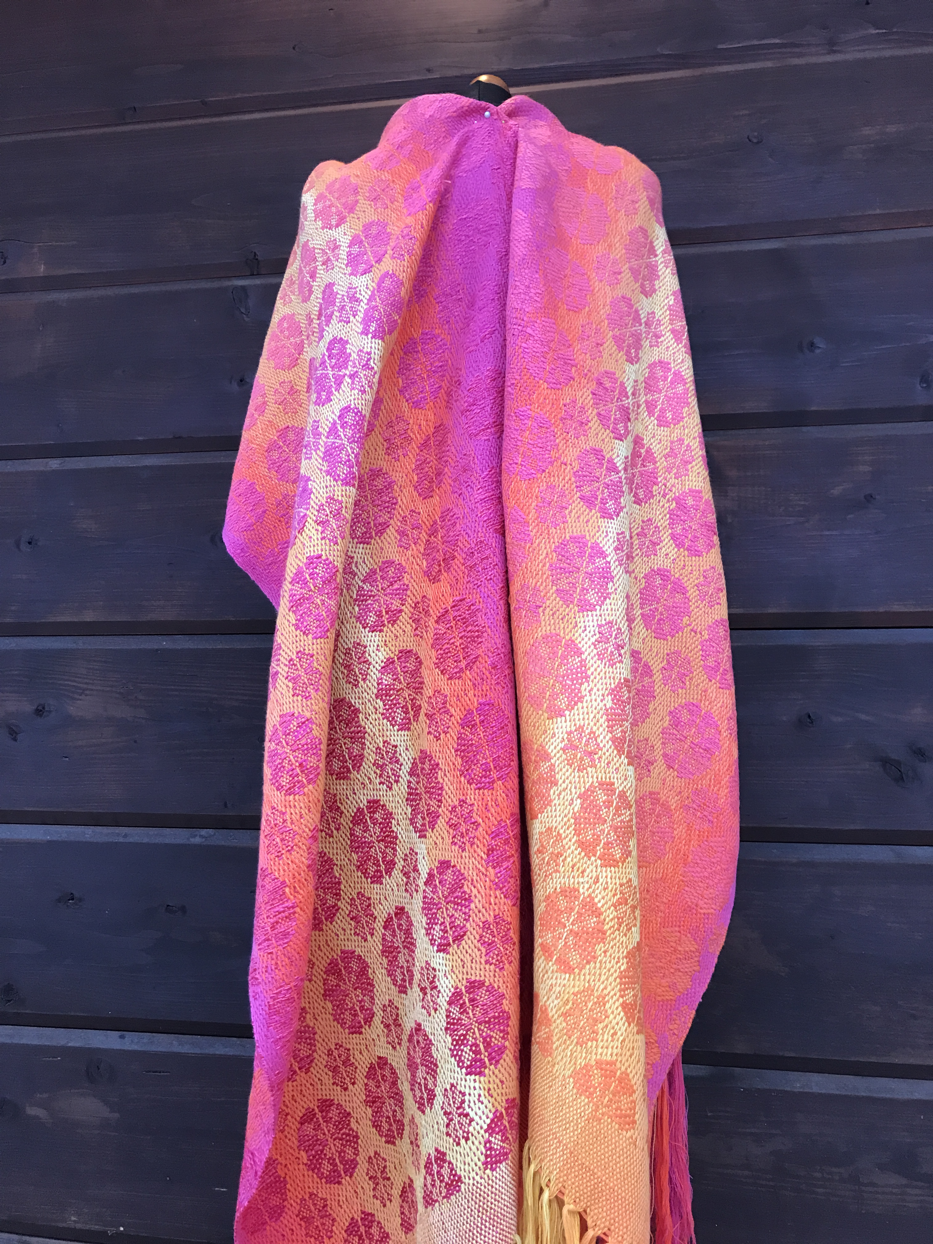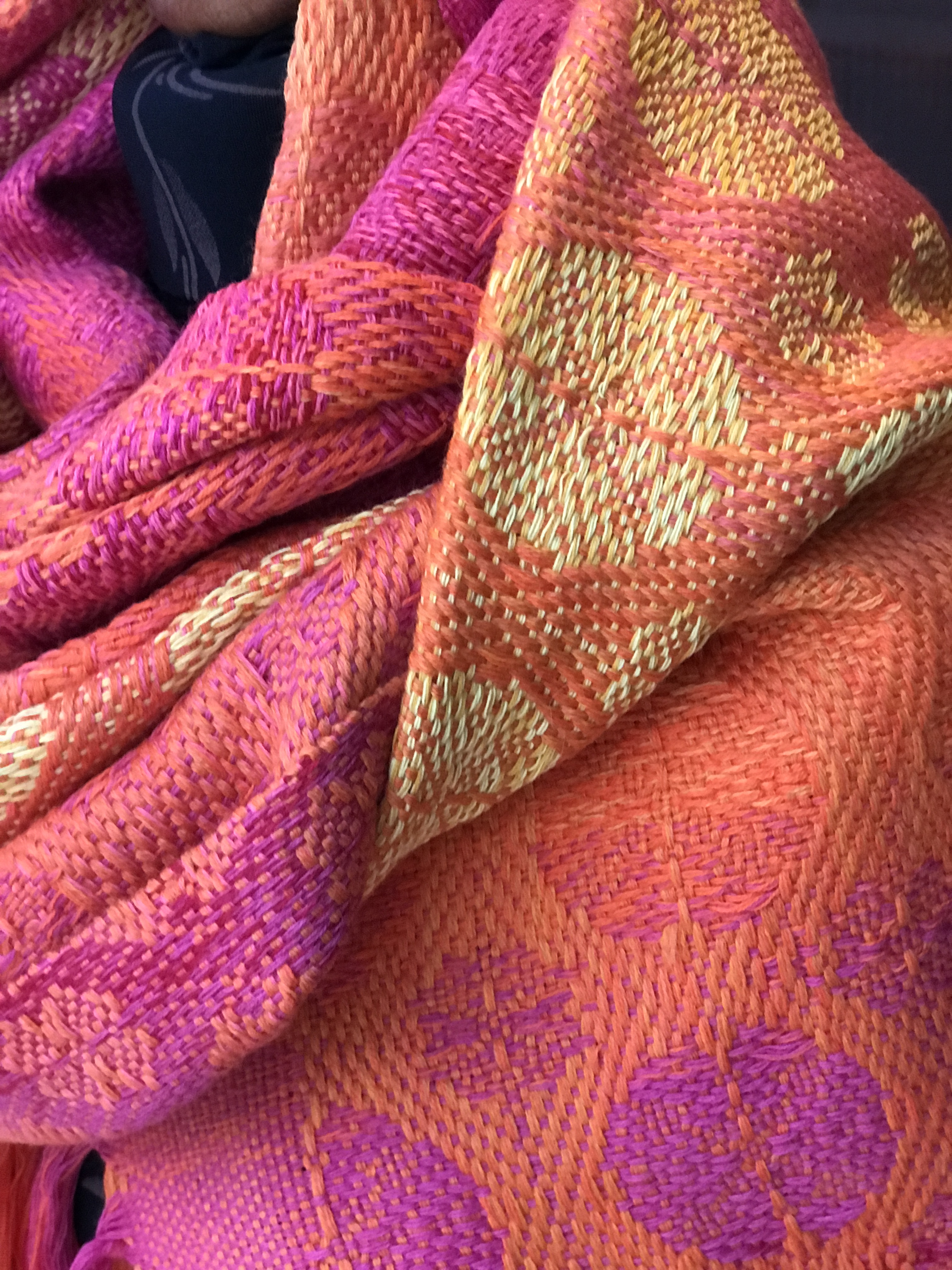 Cytrusowy raj – nowy szal pełen enrgii i witamim. Wytkany ręcznie z miękkiej bawełny orac wełny merynos.