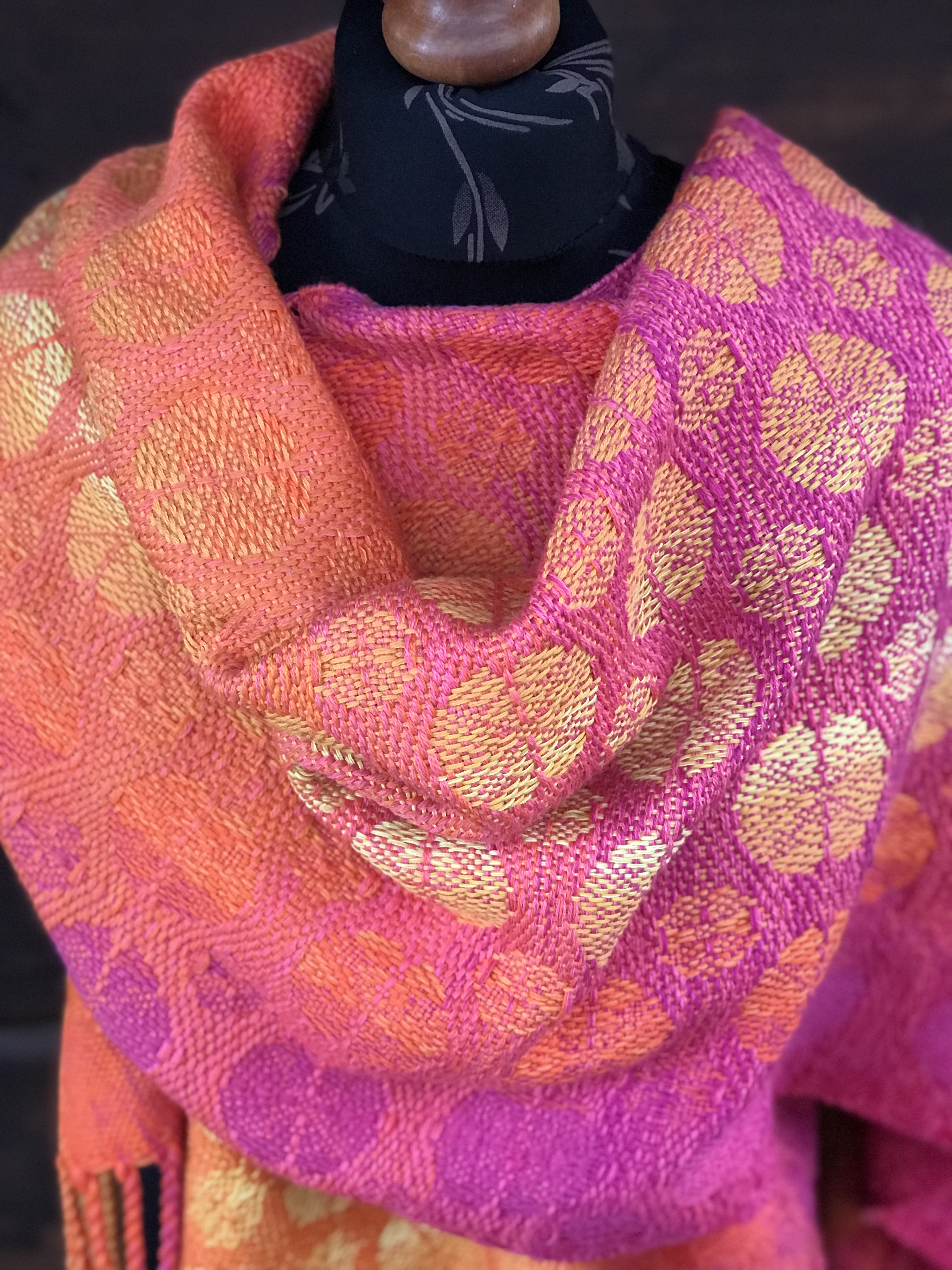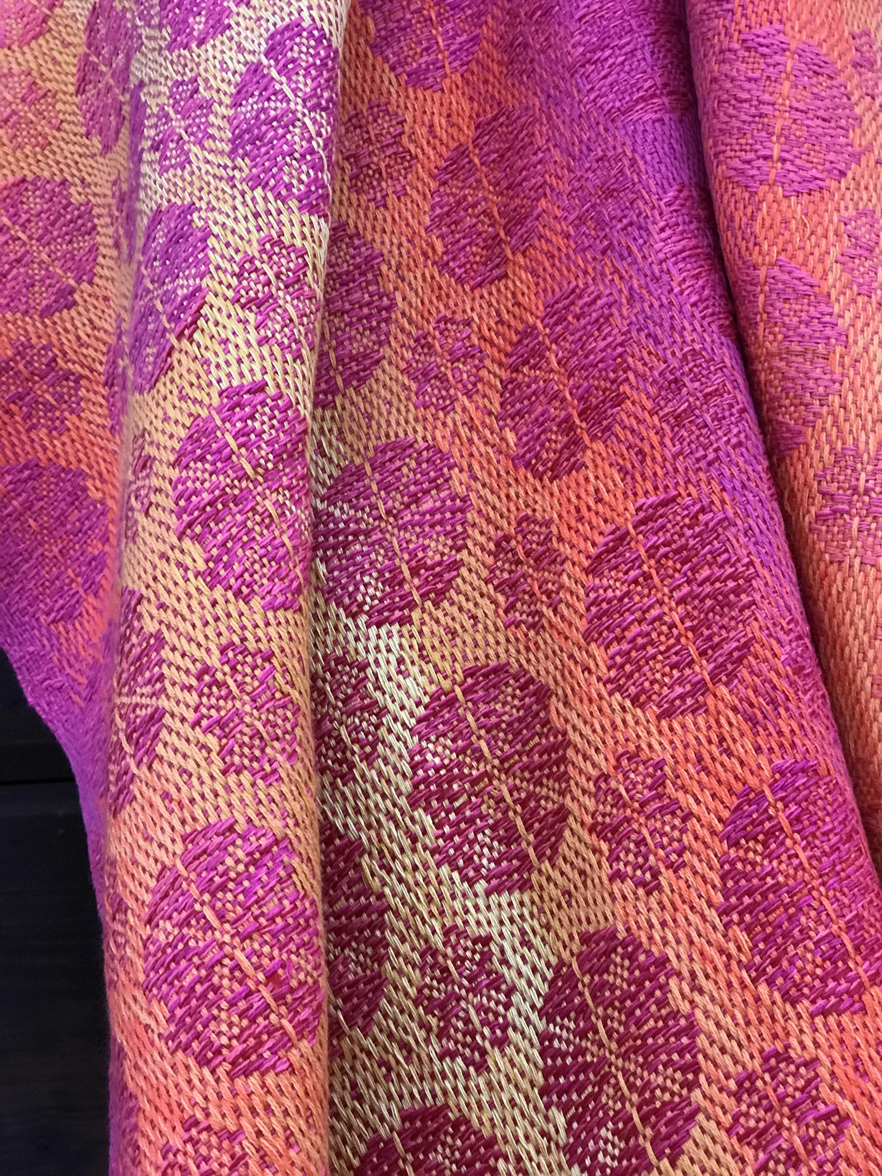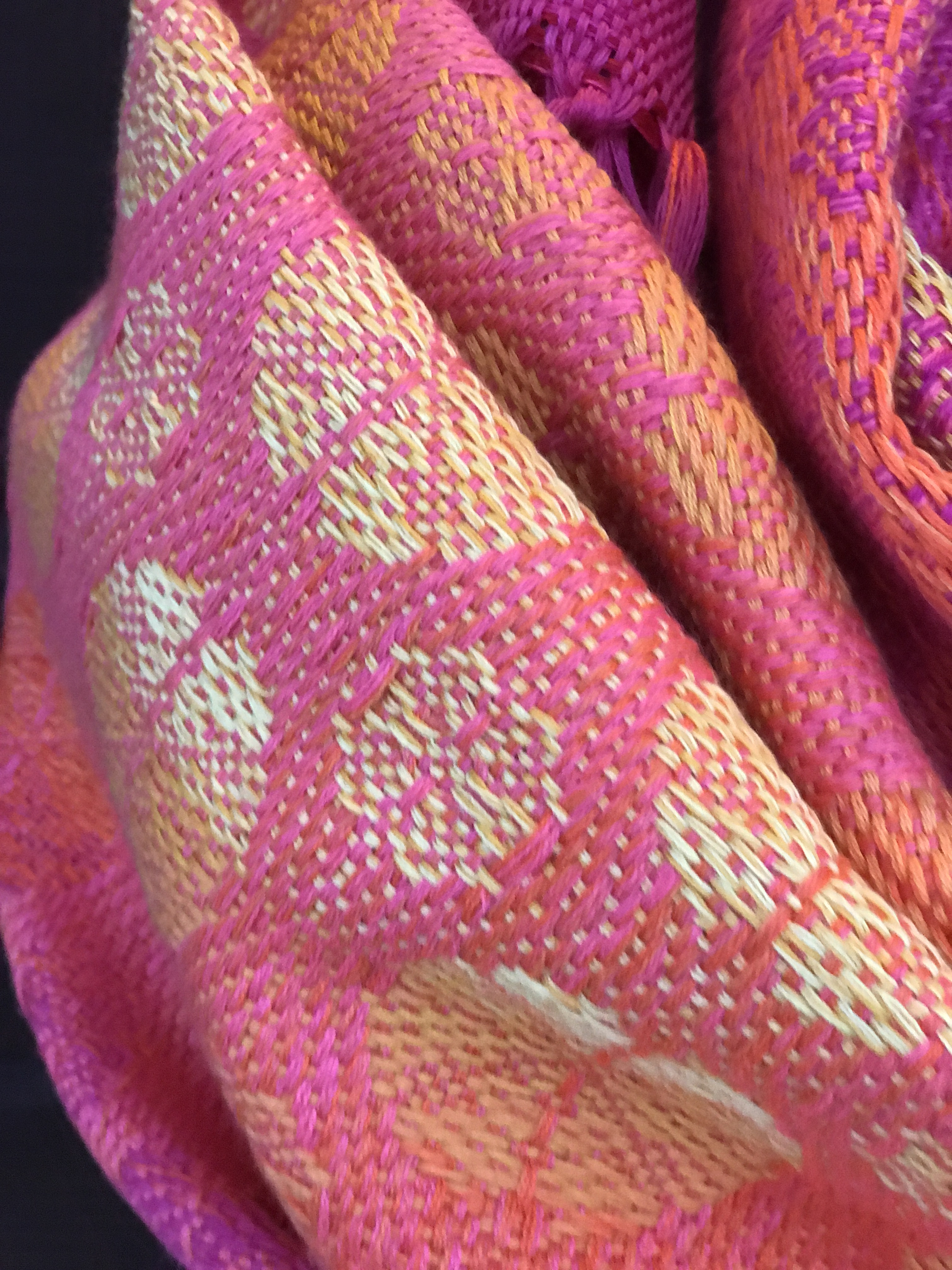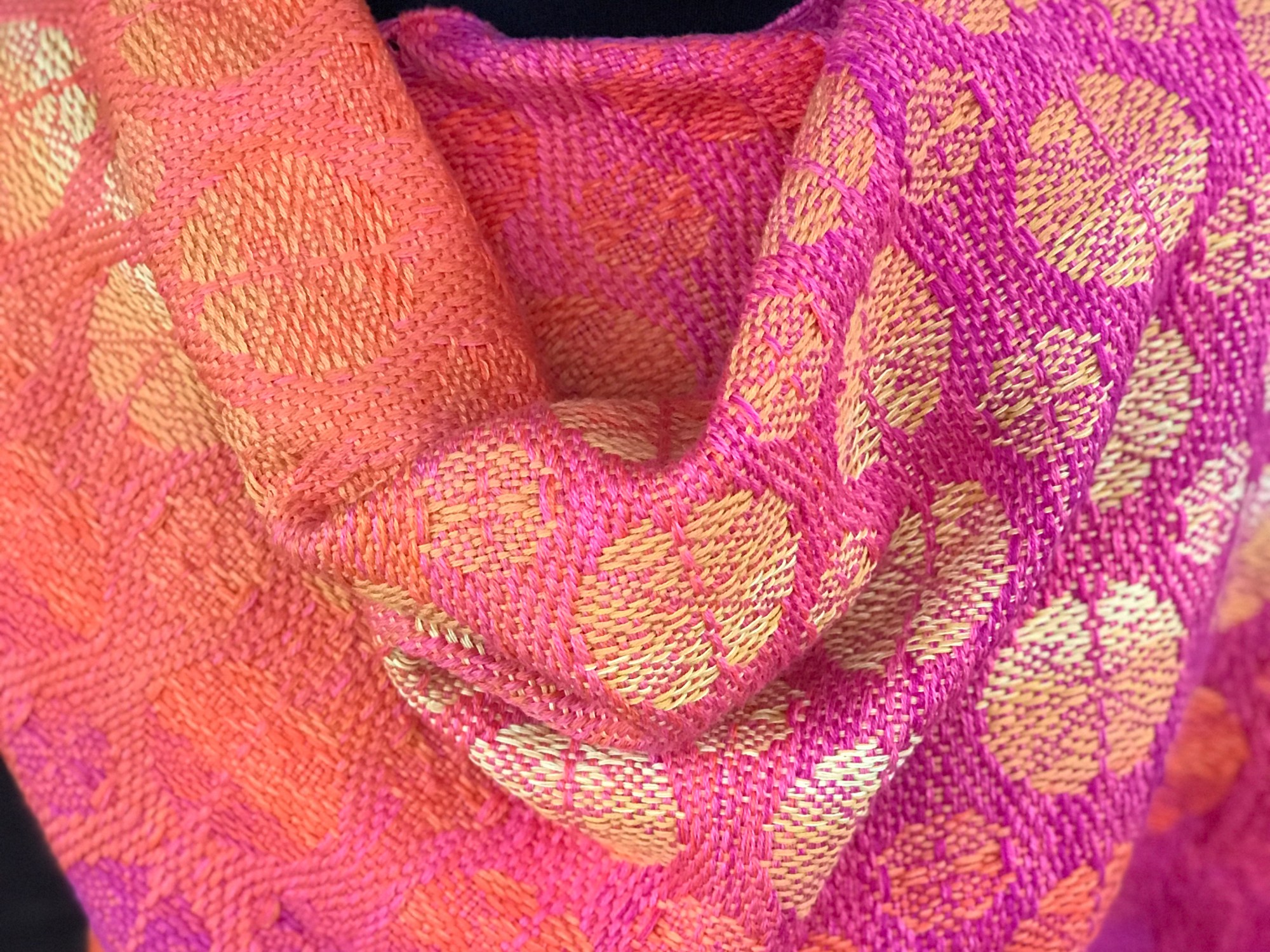 Cytrusowy raj – nowy szal pełen enrgii i witamim. Wytkany ręcznie z miękkiej bawełny orac wełny merynos.