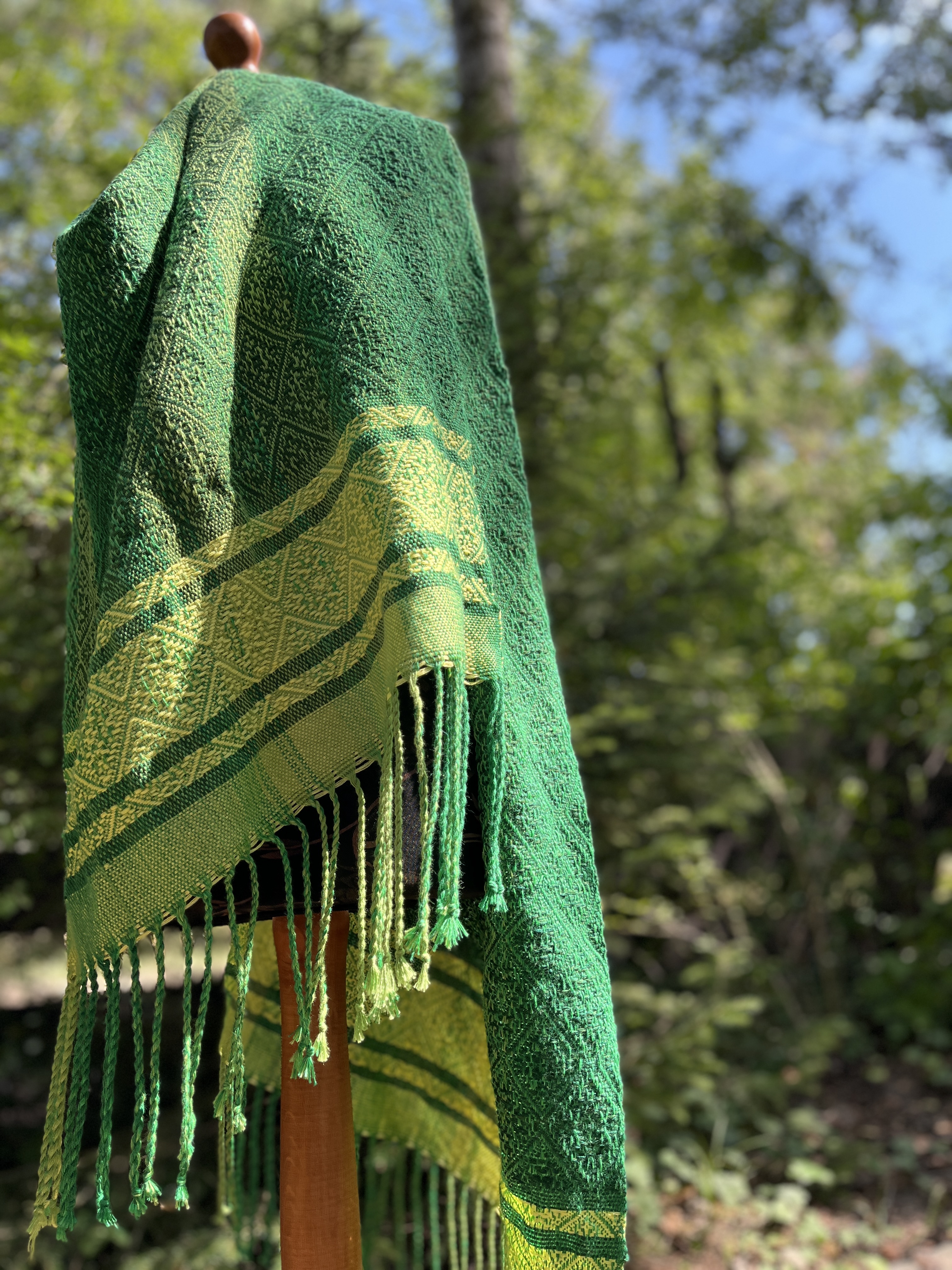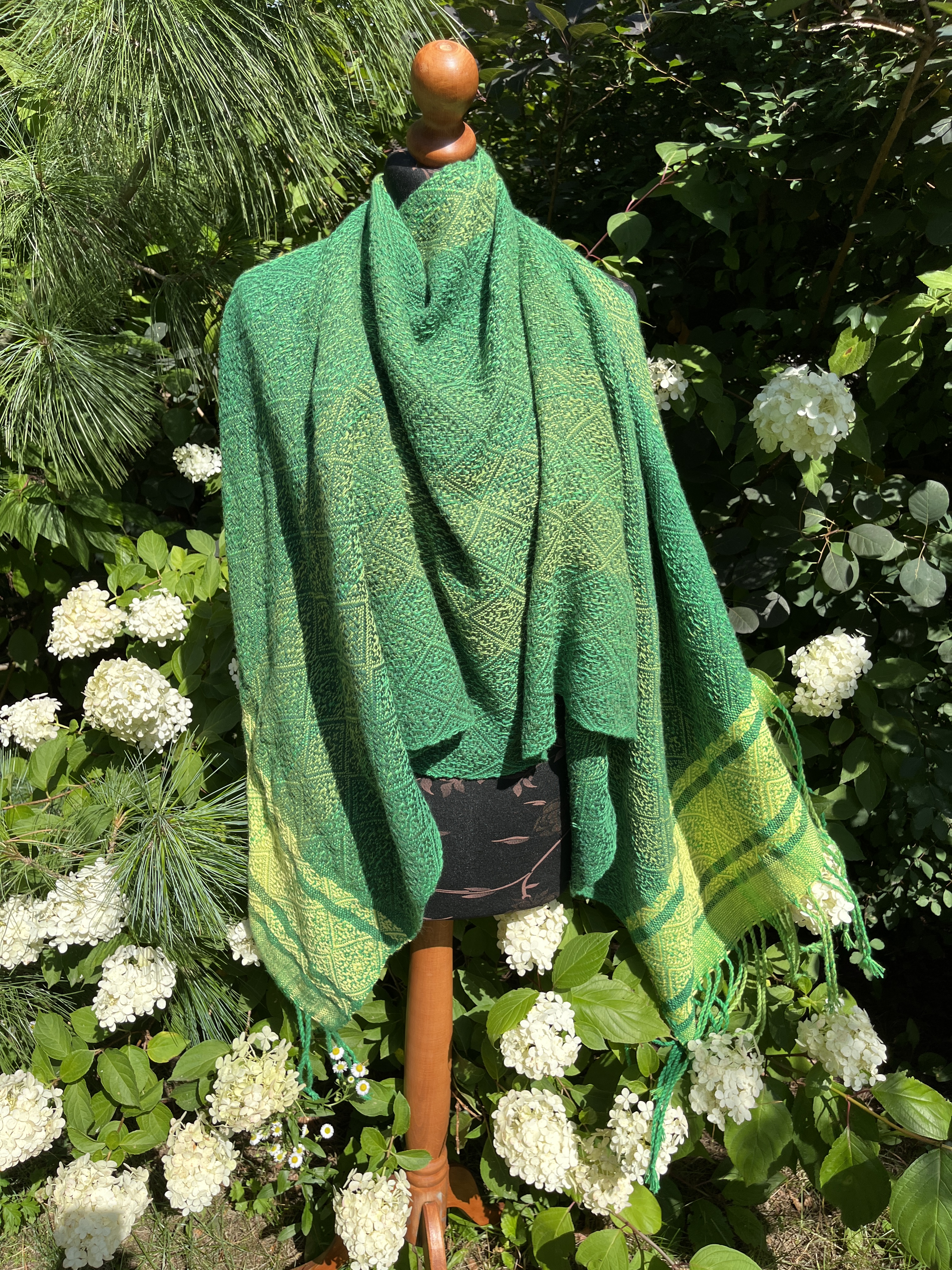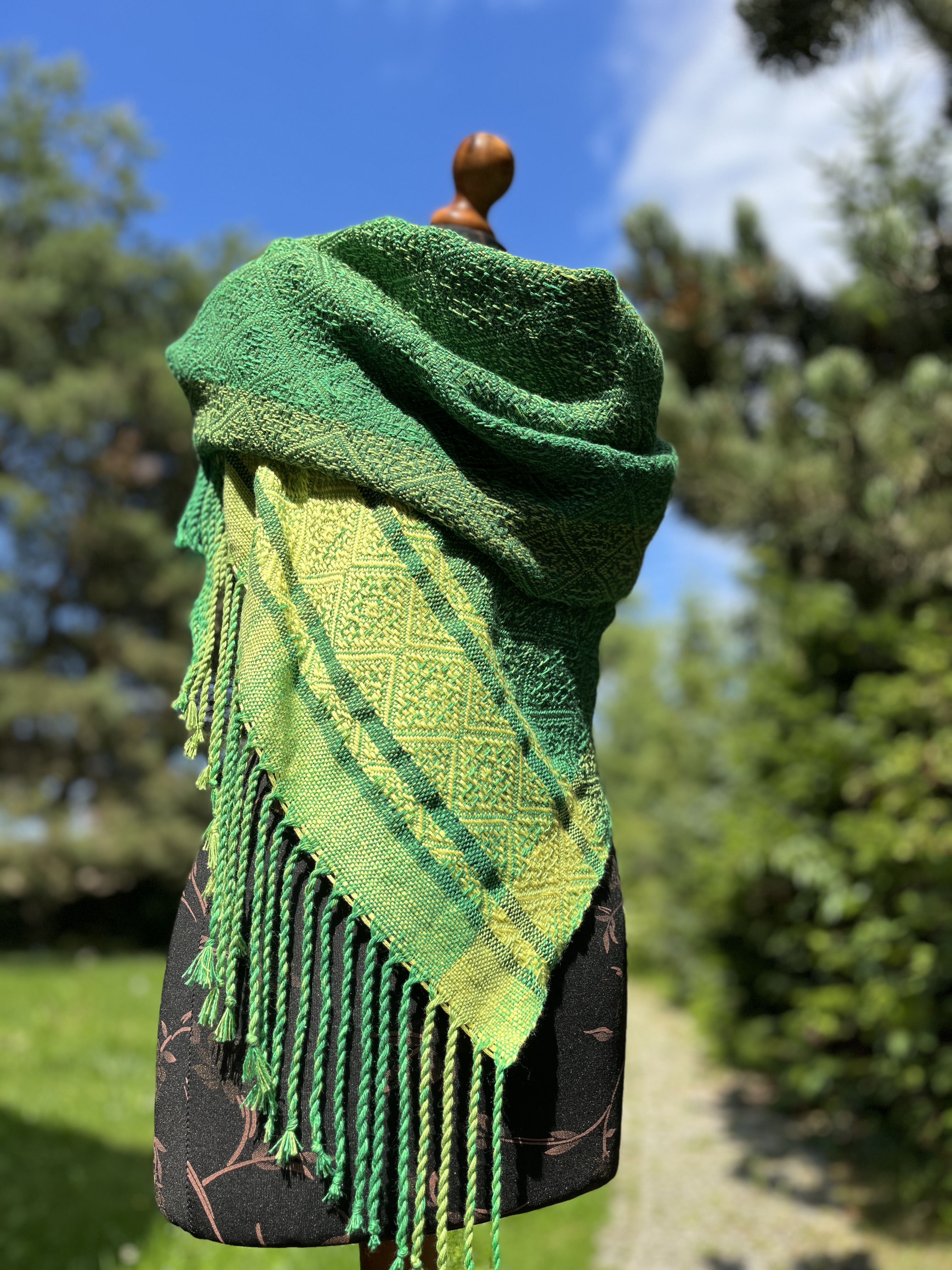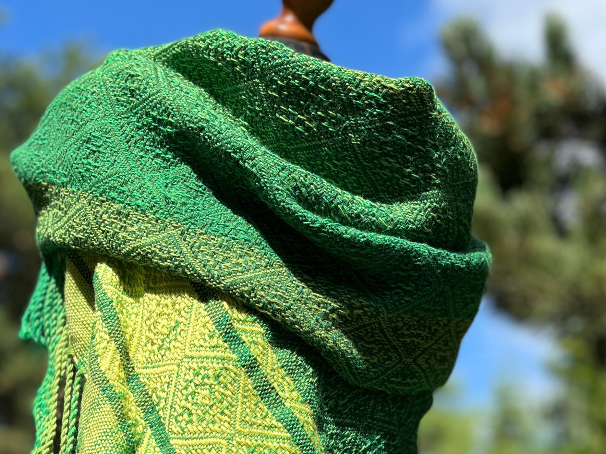 Niech szal „Rococo Verde” z delikatnej wełny merynos będzie Twoim towarzyszem w każdej podróży. Został wykonany z najwyższej jakości materiałów i starannie ręcznie tkany. Jego delikatna struktura i żywe kolory będą zdobić Twoją sylwetkę, a miękka wełna zapewni Ci ciepło i komfort.