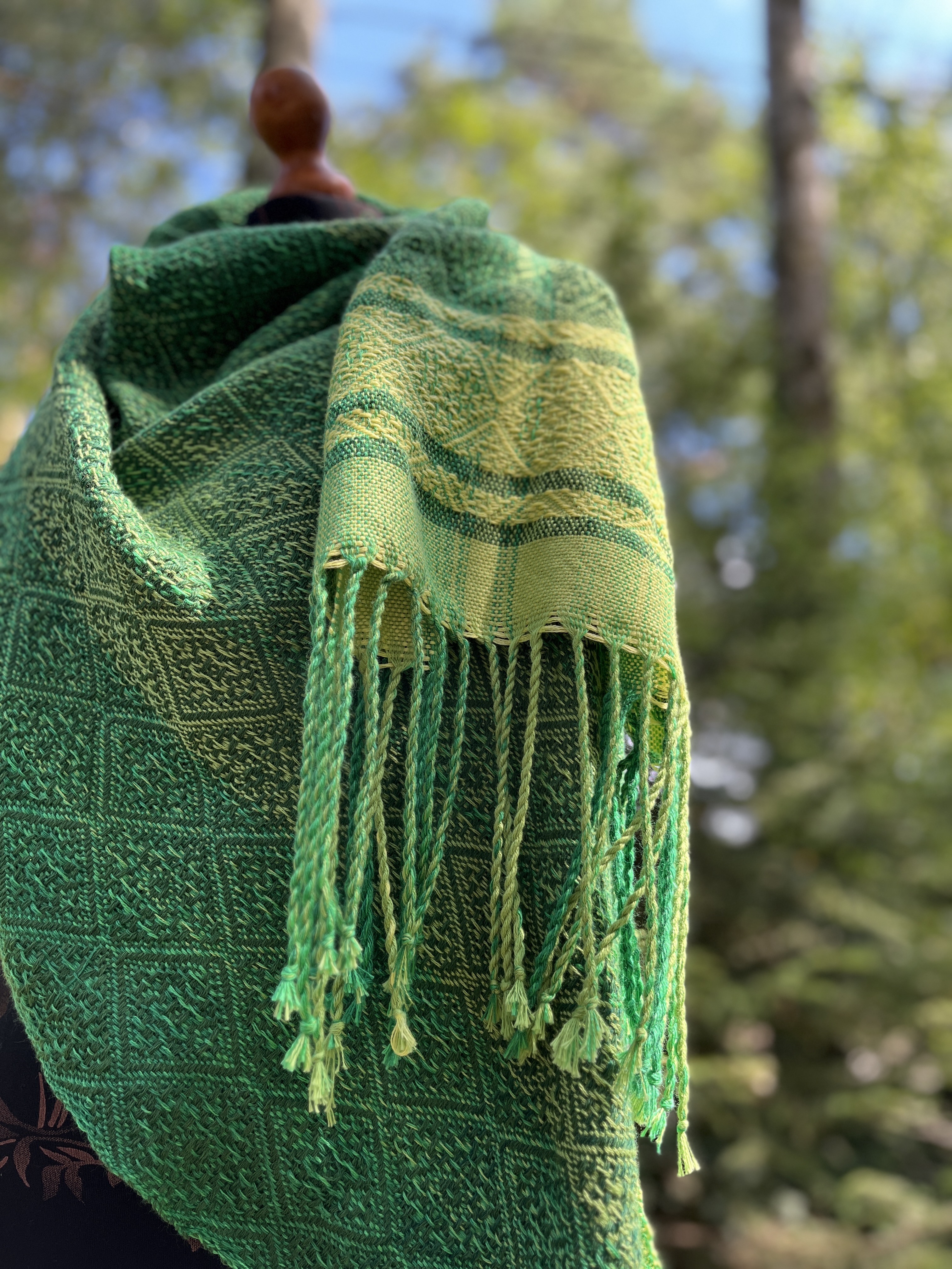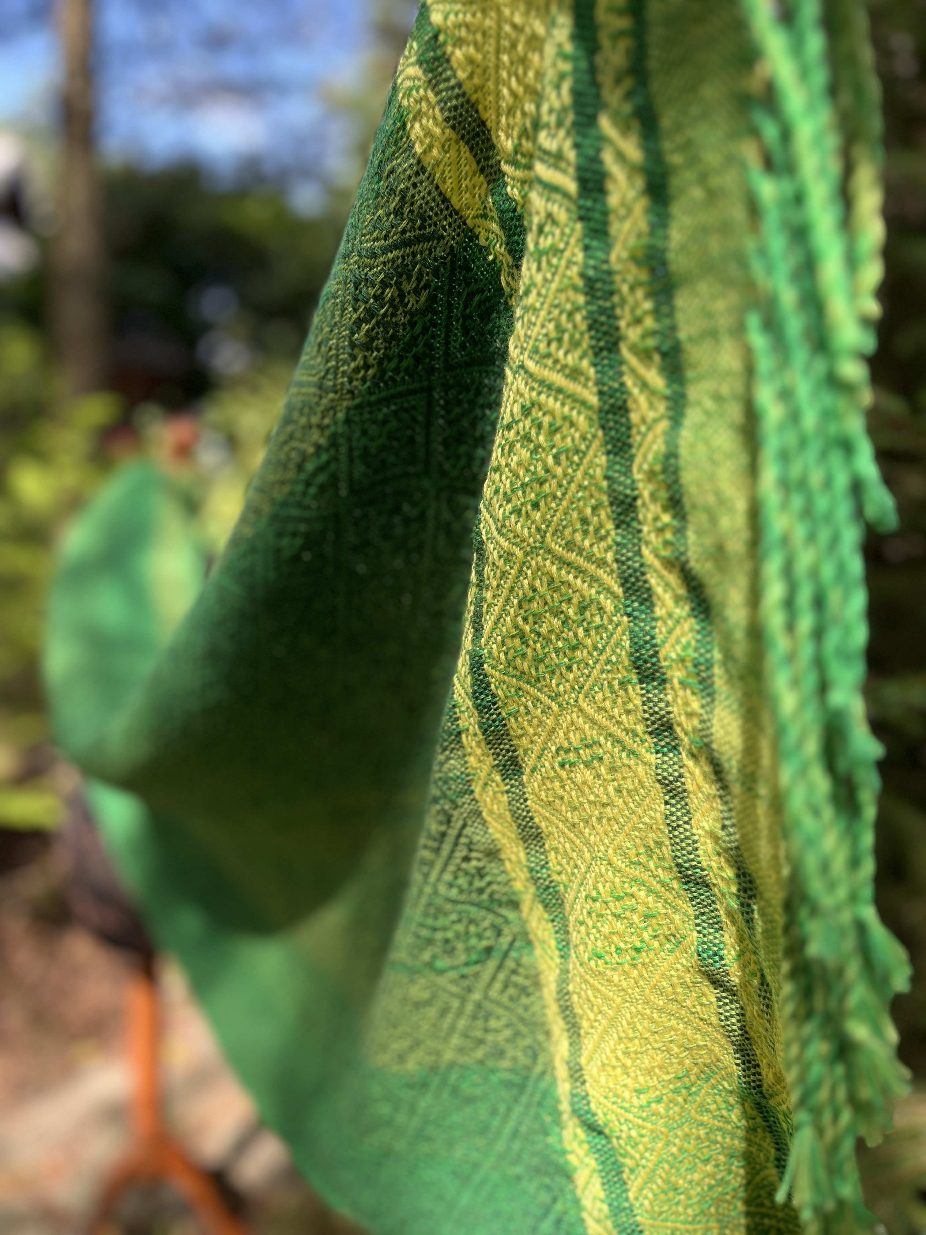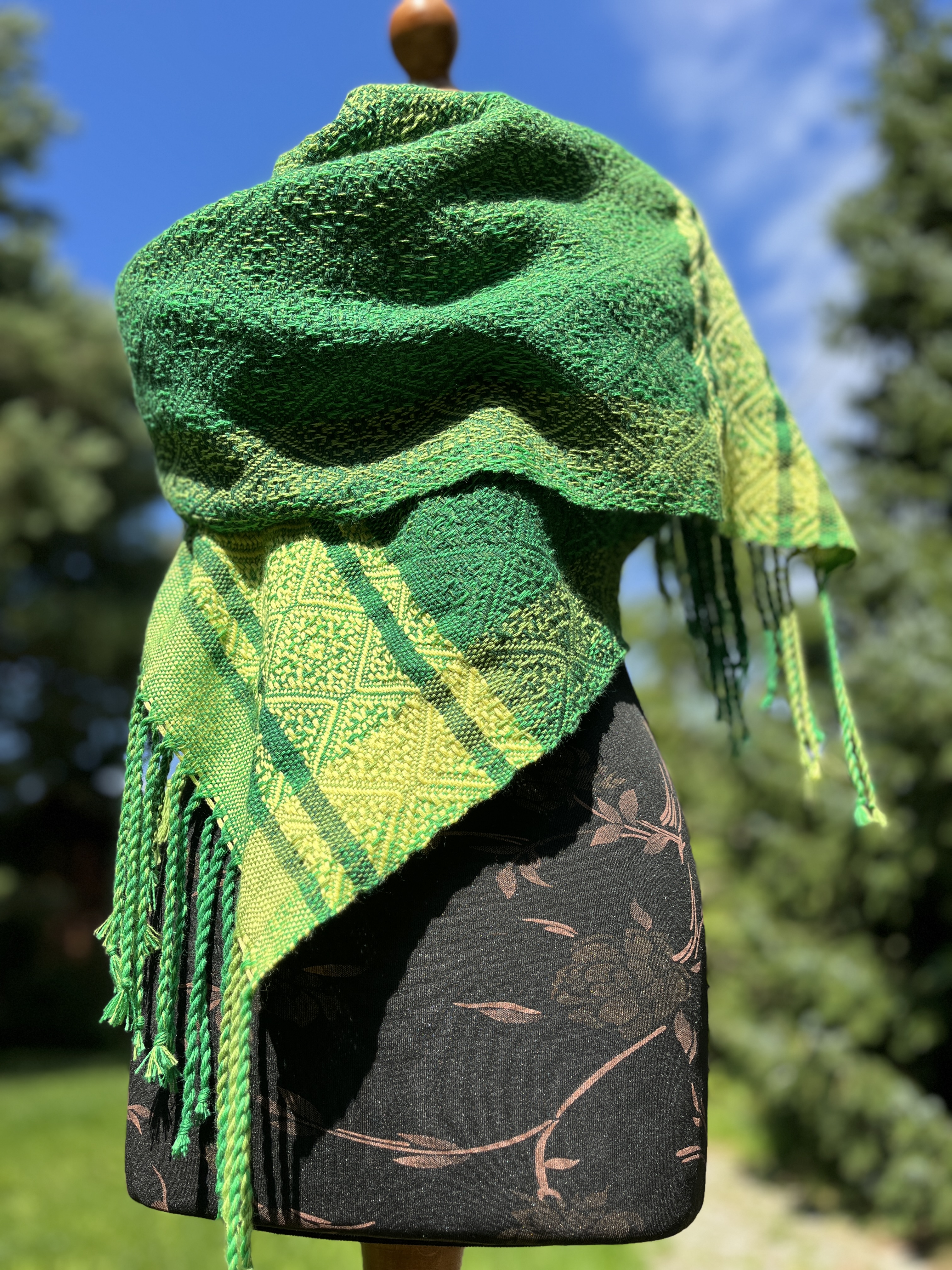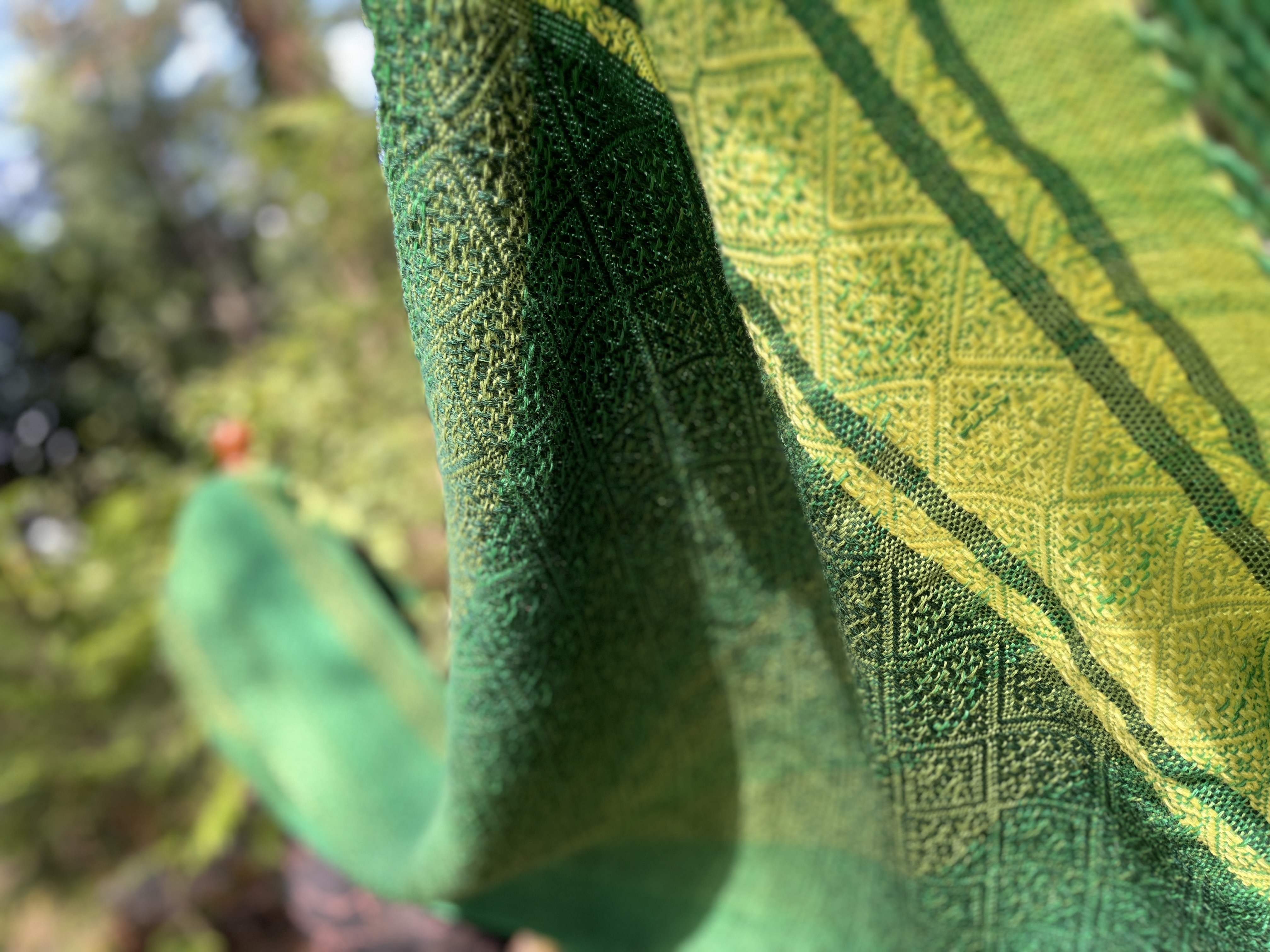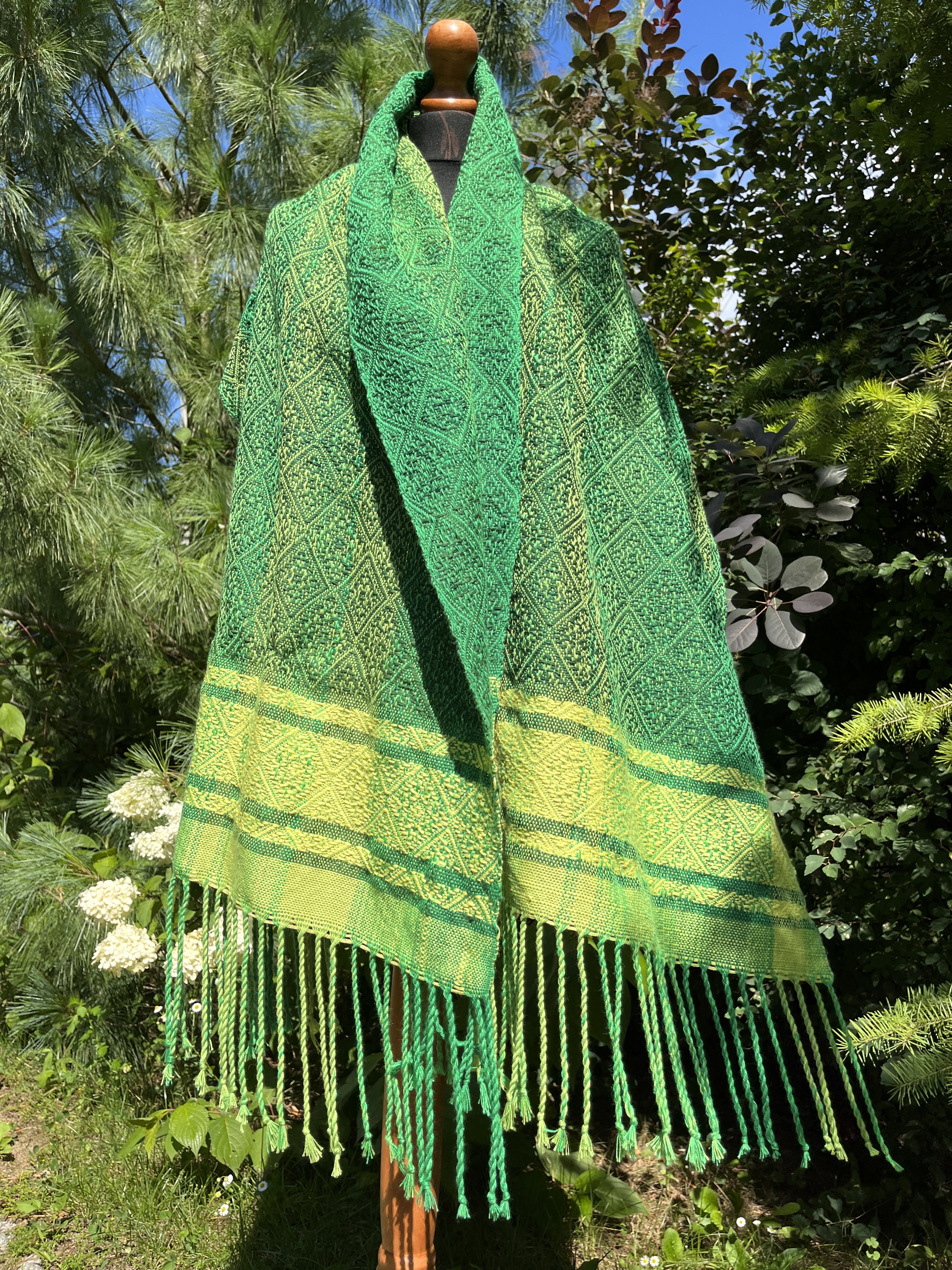 Niech szal „Rococo Verde” z delikatnej wełny merynos będzie Twoim towarzyszem w każdej podróży. Został wykonany z najwyższej jakości materiałów i starannie ręcznie tkany. Jego delikatna struktura i żywe kolory będą zdobić Twoją sylwetkę, a miękka wełna zapewni Ci ciepło i komfort.