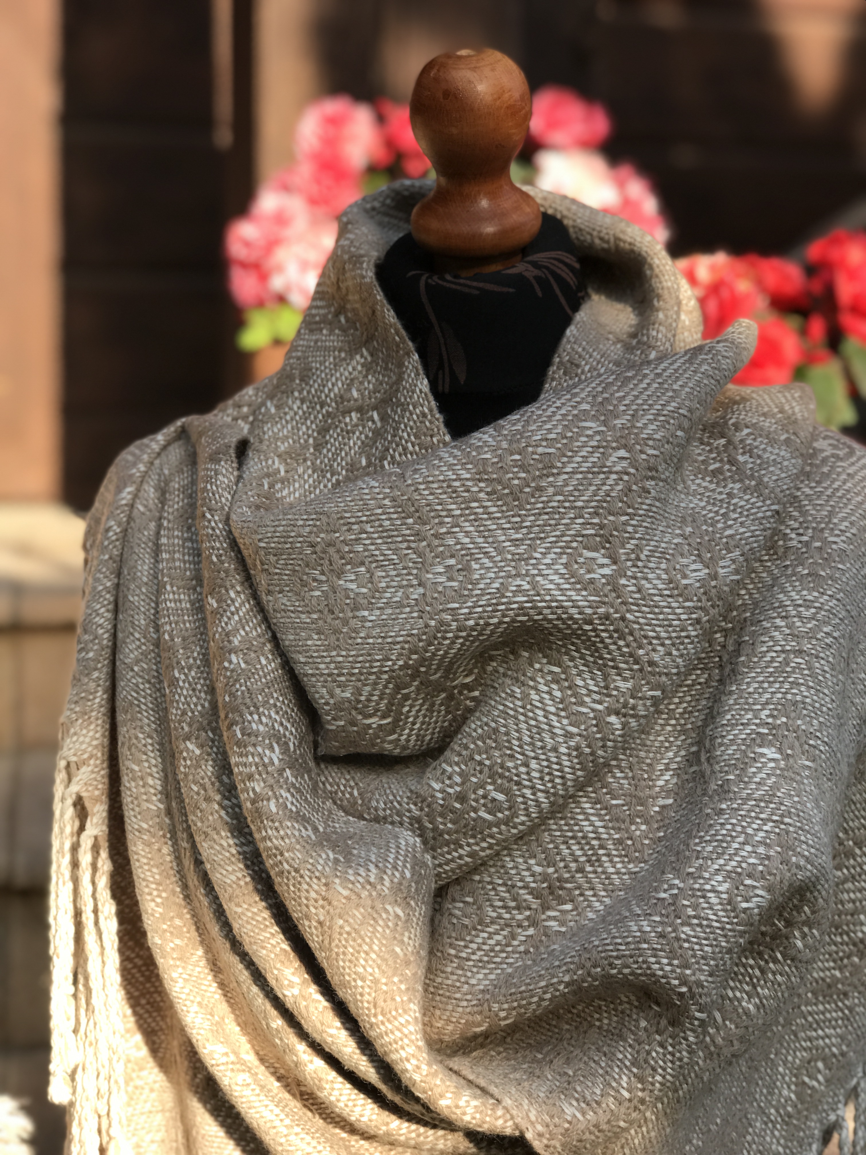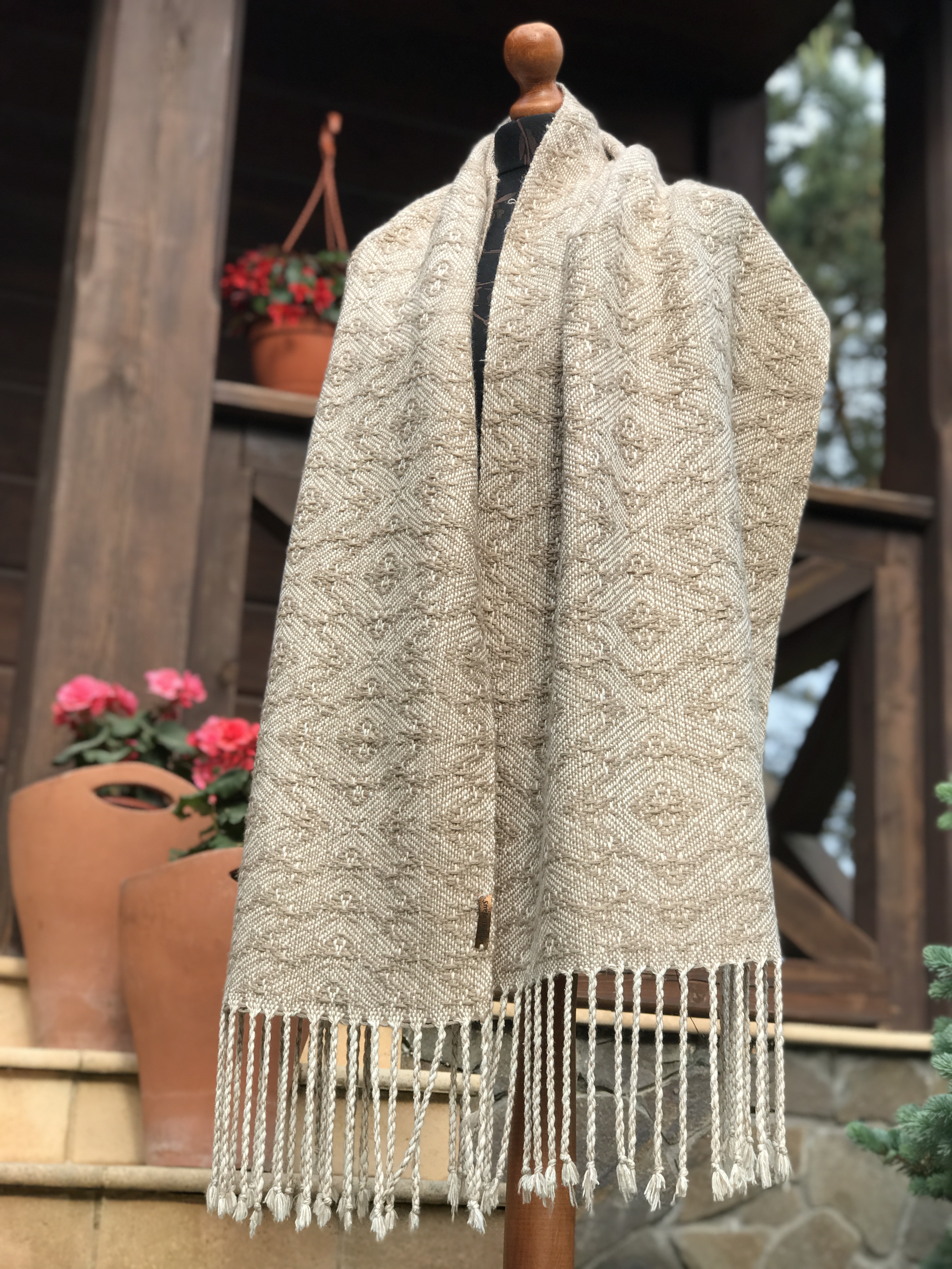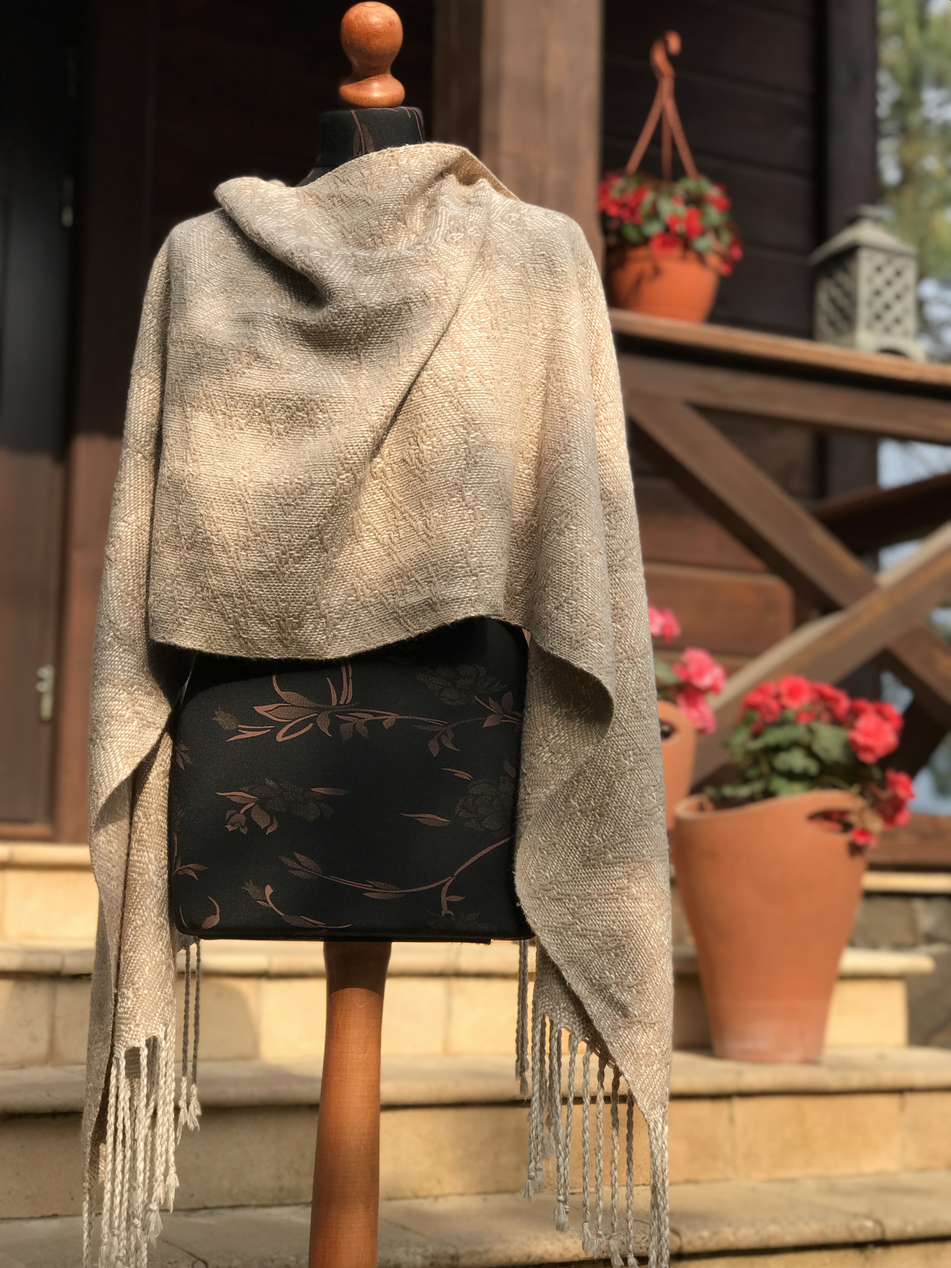 Przedstawiamy Państwu chustę z najnowszej serii „Bądź Naturalna” w pięknych odcieniach beżu i kremu. Ta elegancka chusta jest idealnym dodatkiem do wieczorowych kreacji, dodając im subtelności i szyku. Jest wykonana przy użyciu wysokiej jakości materiałów, takich jak bawełna i jedwab w osnowie, oraz wełny z merynosa w wątku. Połączenie tych naturalnych włókien daje pożądany efekt miękkości, gładkości i przyjemności w dotyku.