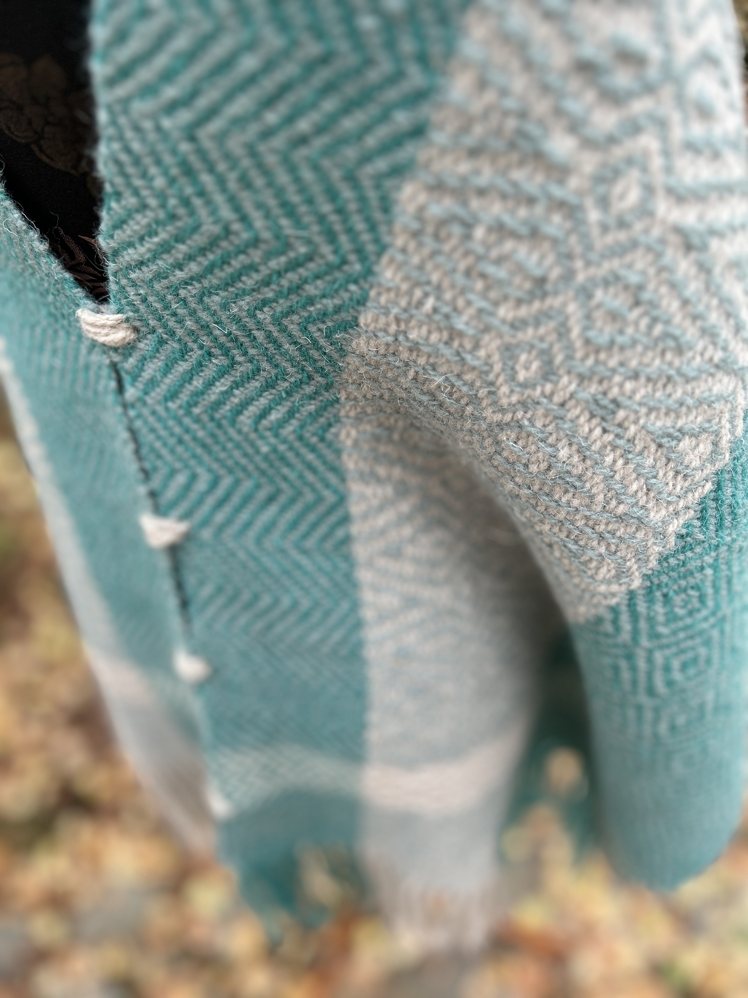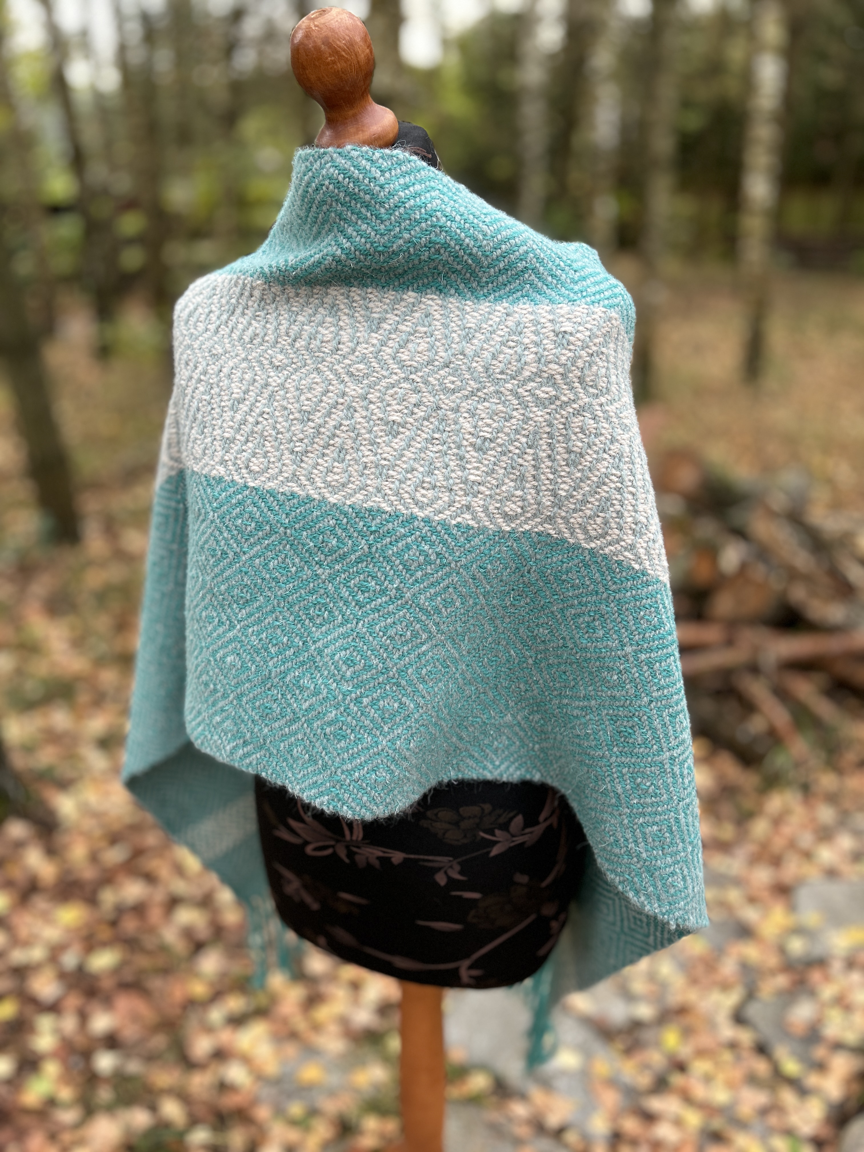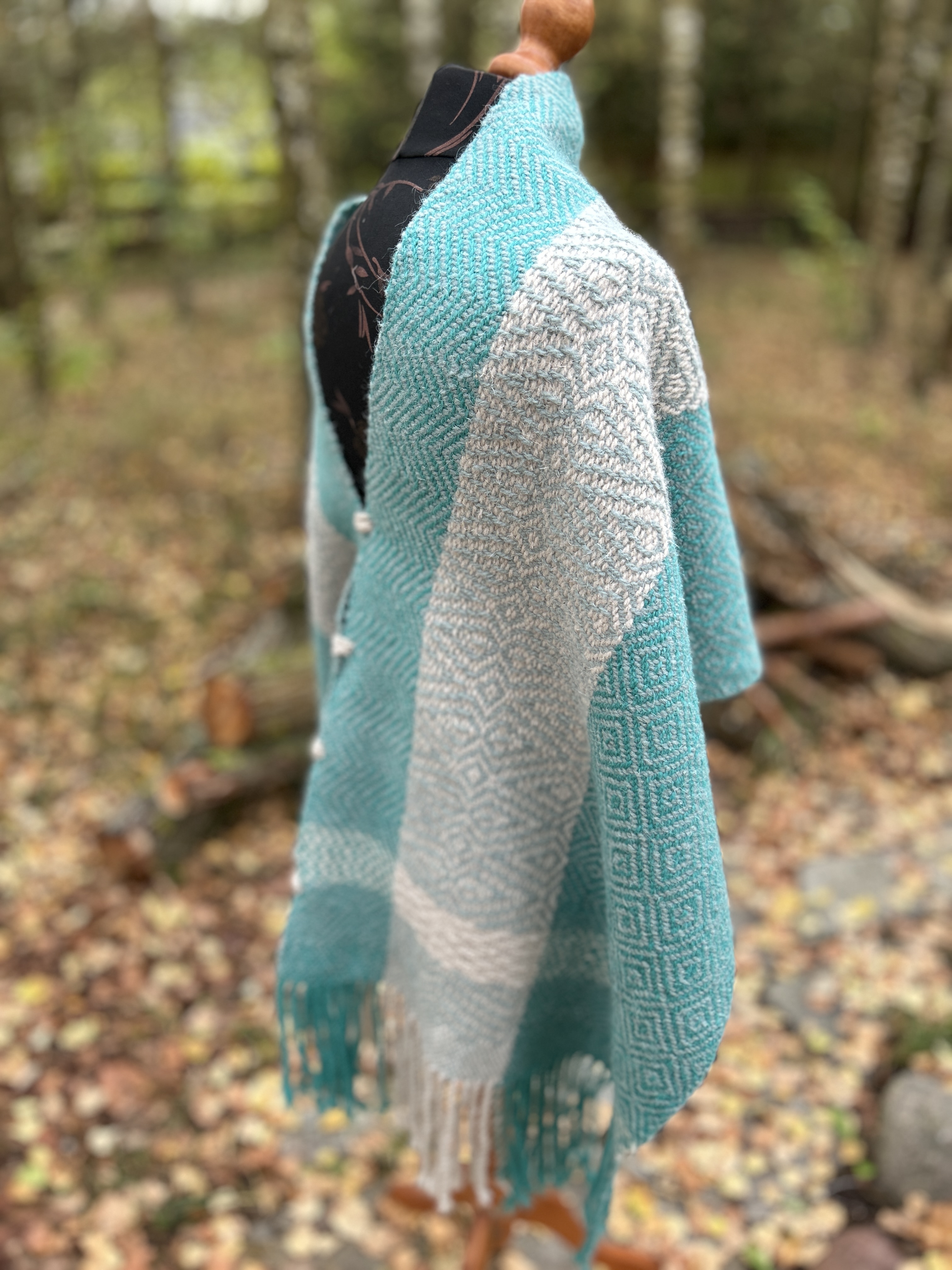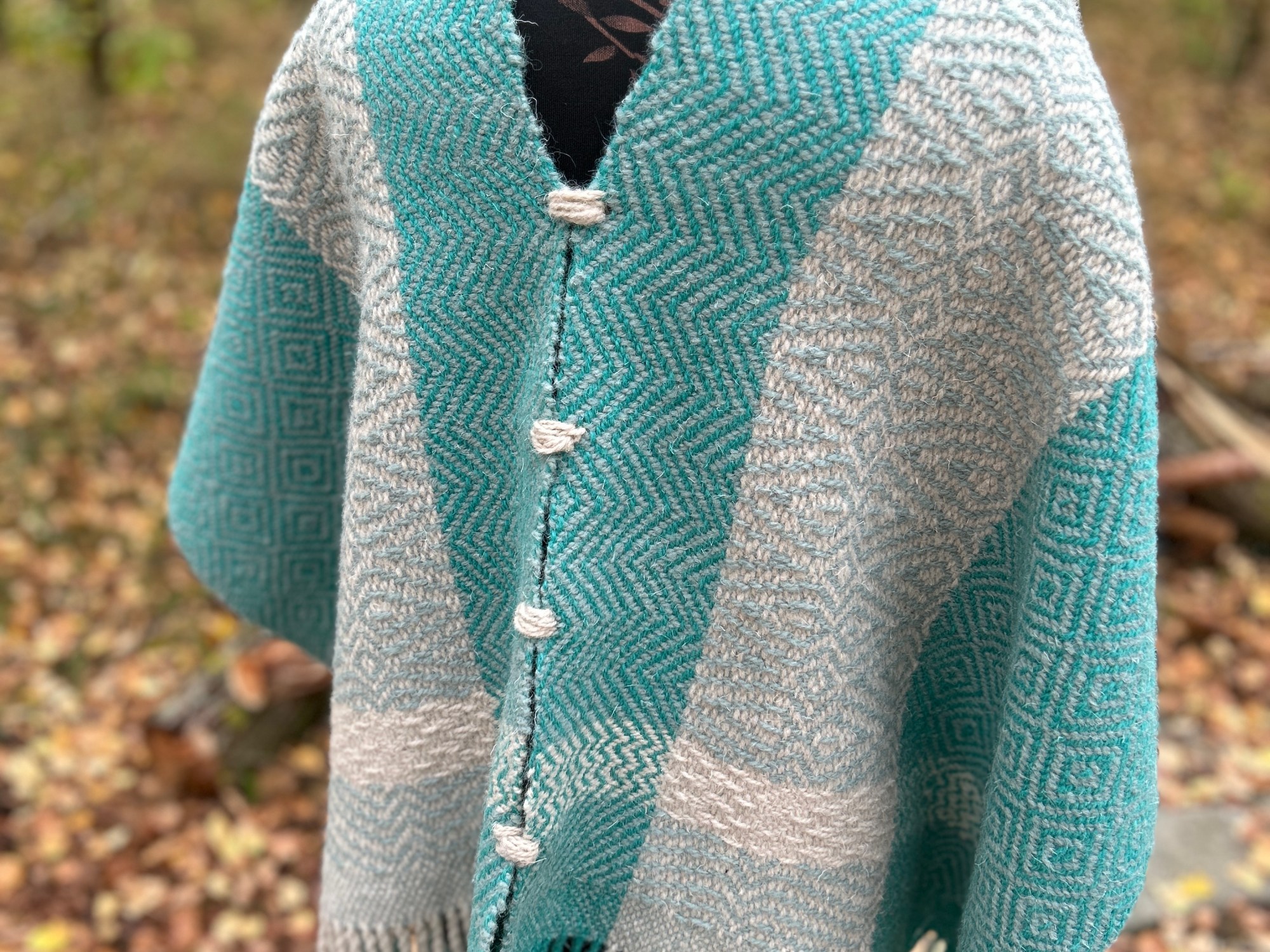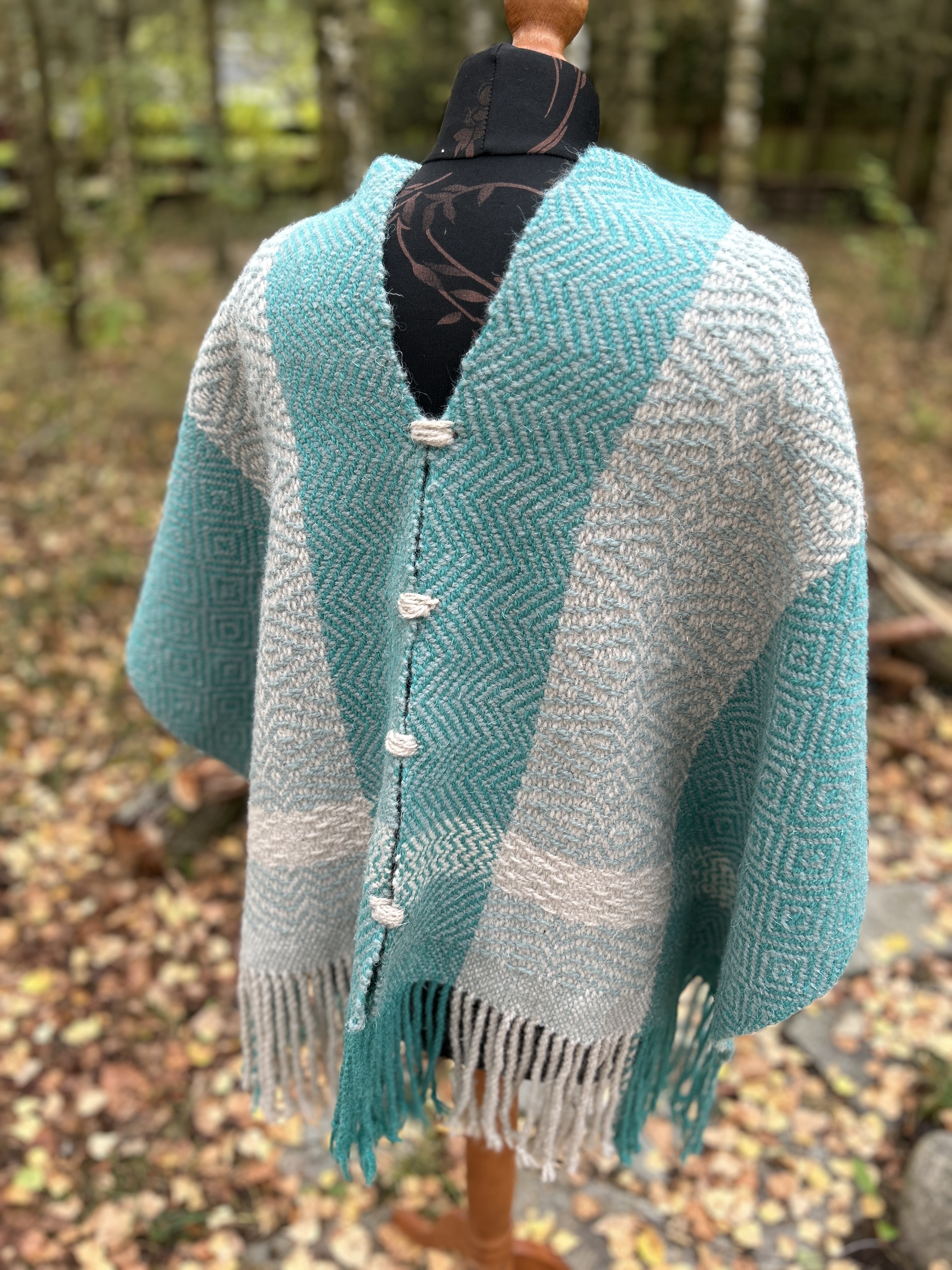 Odkryj ciepło i tradycję w Tym Wełnianym Ponczu wytkanym ręcznie na krośnie ludowym.