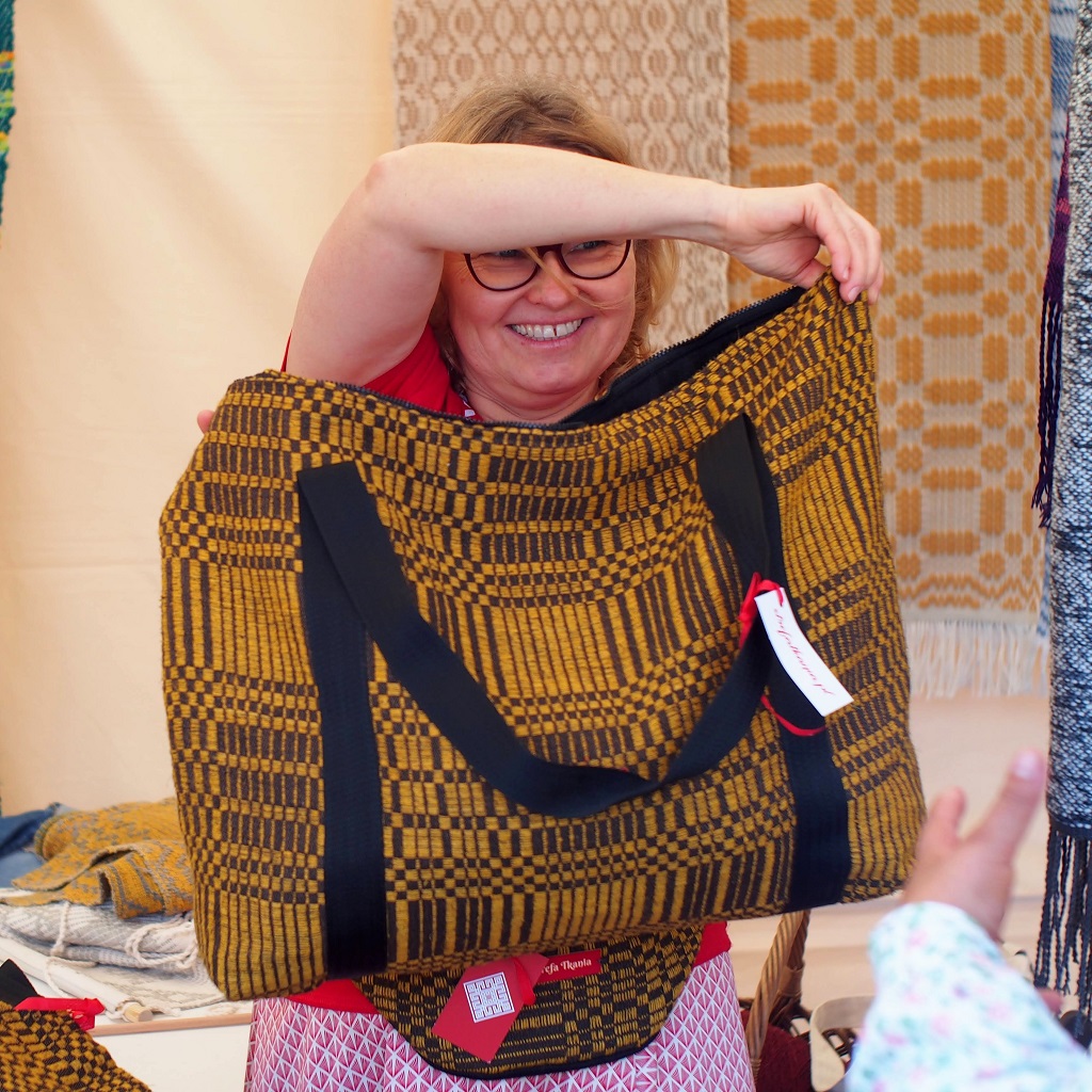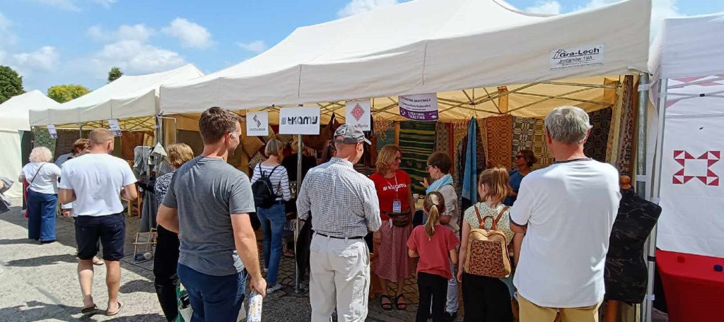 - piknik tkacki – najważniejsza dla mnie część. Przez cały dzień ja i moje koleżanki z #tkamy oraz ponad 30 innych tkaczek opowiadaliśmy i przentowalismy różne techniki tkackie,