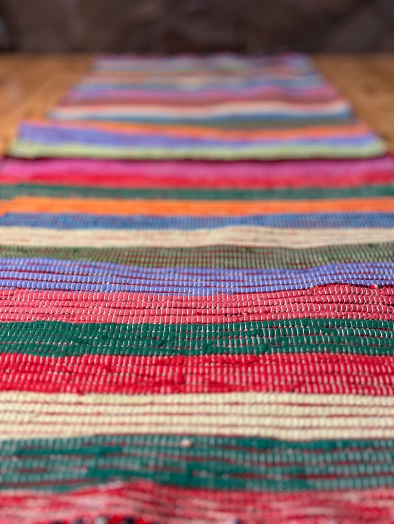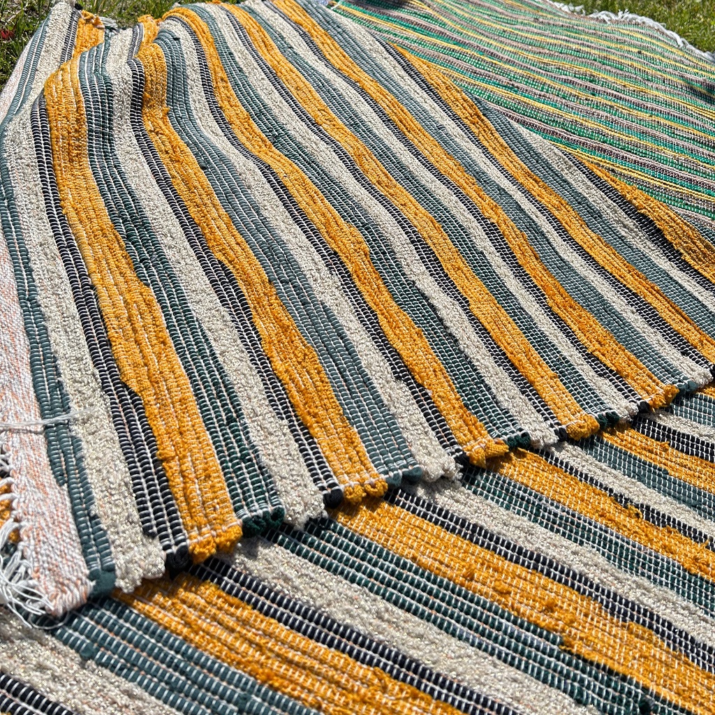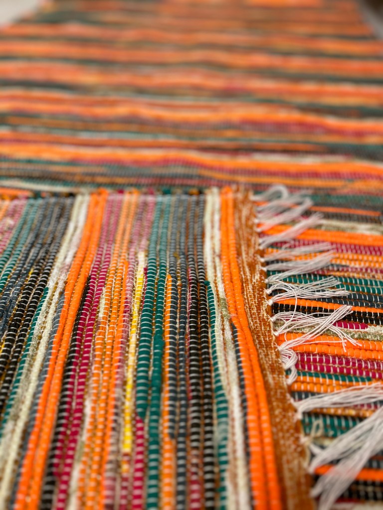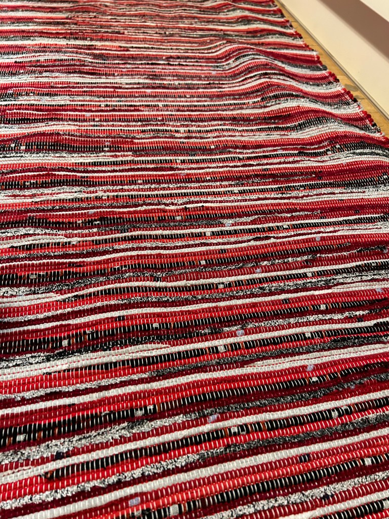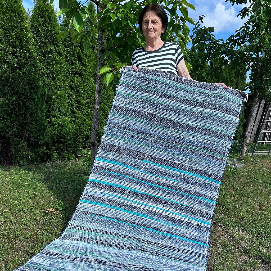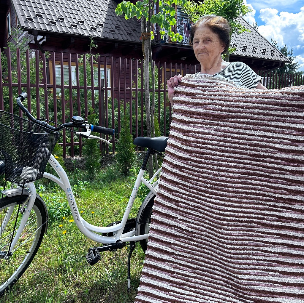 Pani Donata jest moją sąsiadką i tka od zawsze chodniki. Było i jest to dodatkowe żródło dochodu. Mówi, że teraz tka się inaczej. Cokolwiek to znaczy, ale jej chodniki są bardzo fajne, starannie wykonane, kolorowe i bardzo mocne. Pani Donata ma taki zapas pasków na chodniki, że mogłaby „obtkać” całe miasto..