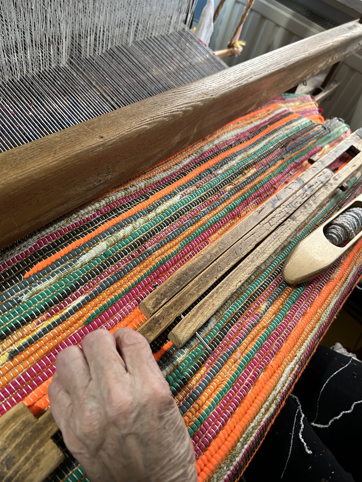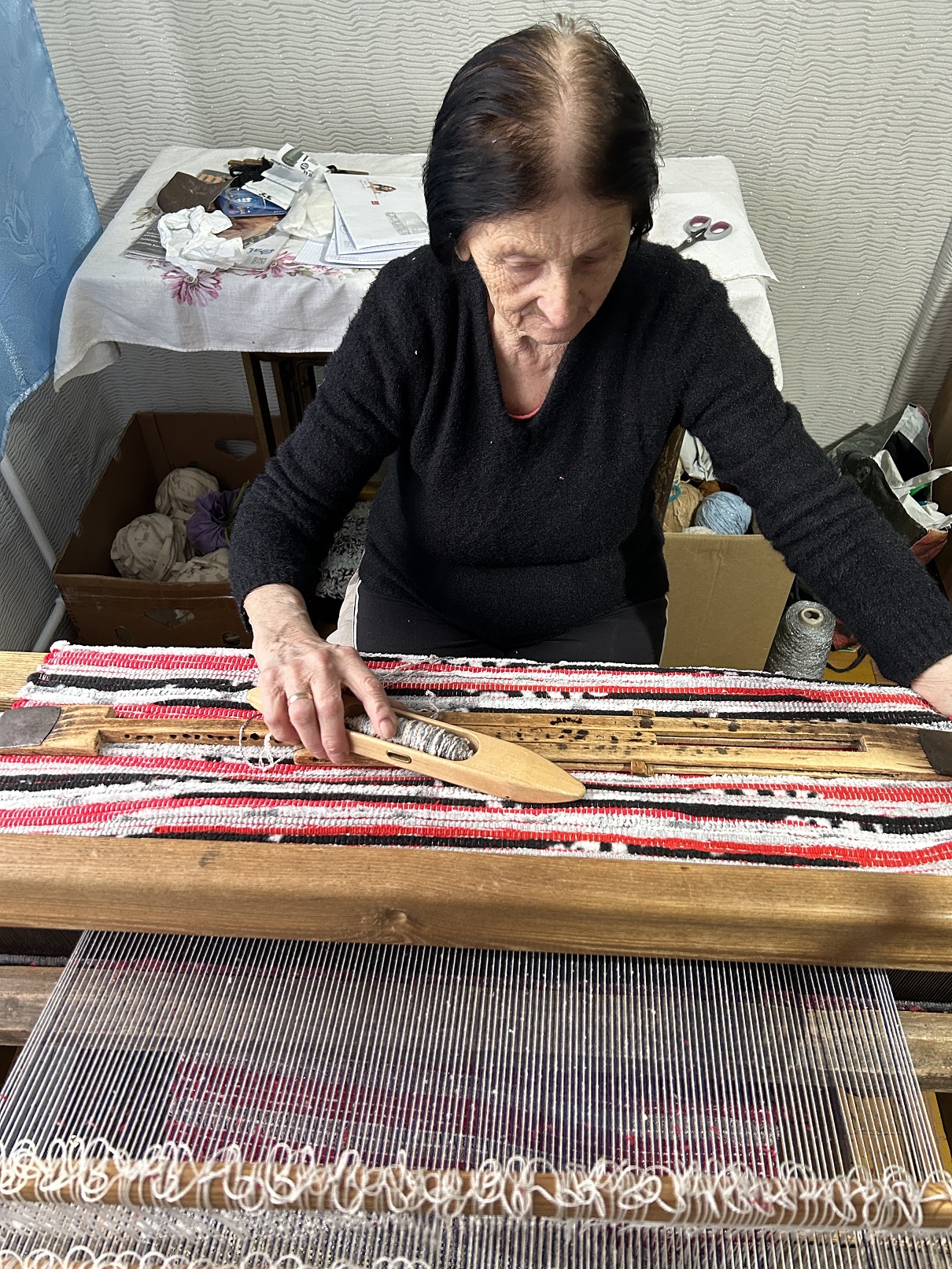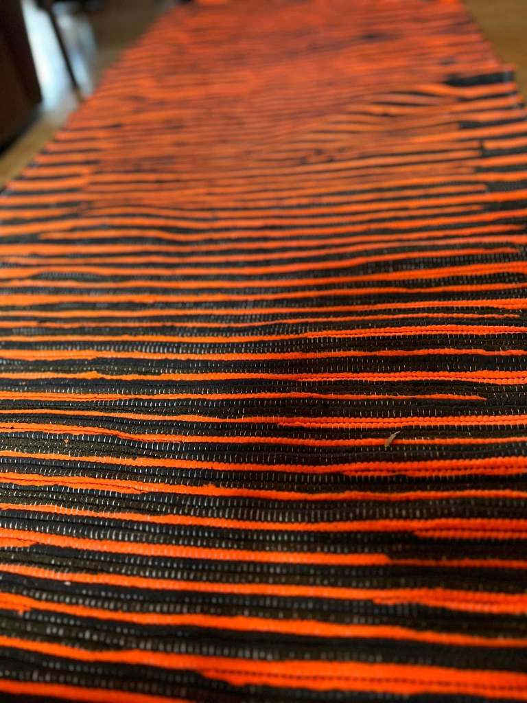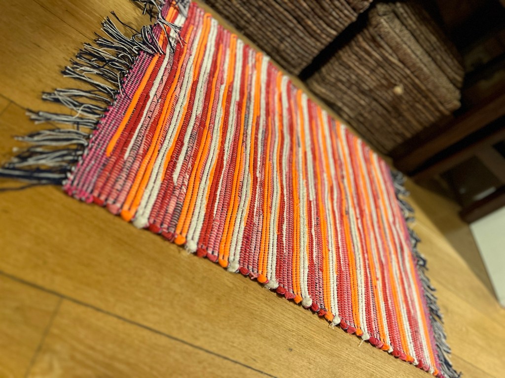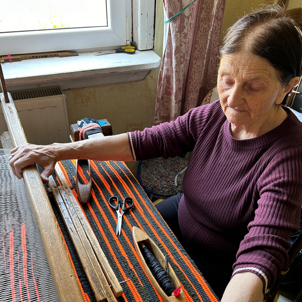 Pani Donata jest moją sąsiadką i tka od zawsze chodniki. Było i jest to dodatkowe żródło dochodu. Mówi, że teraz tka się inaczej. Cokolwiek to znaczy, ale jej chodniki są bardzo fajne, starannie wykonane, kolorowe i bardzo mocne. Pani Donata ma taki zapas pasków na chodniki, że mogłaby „obtkać” całe miasto..