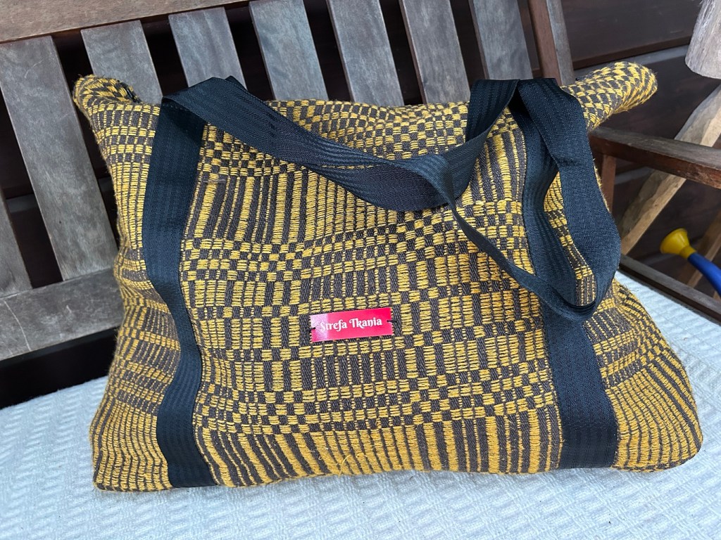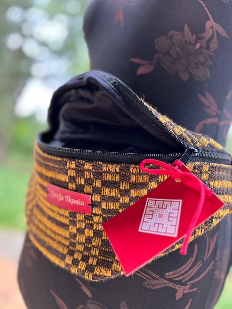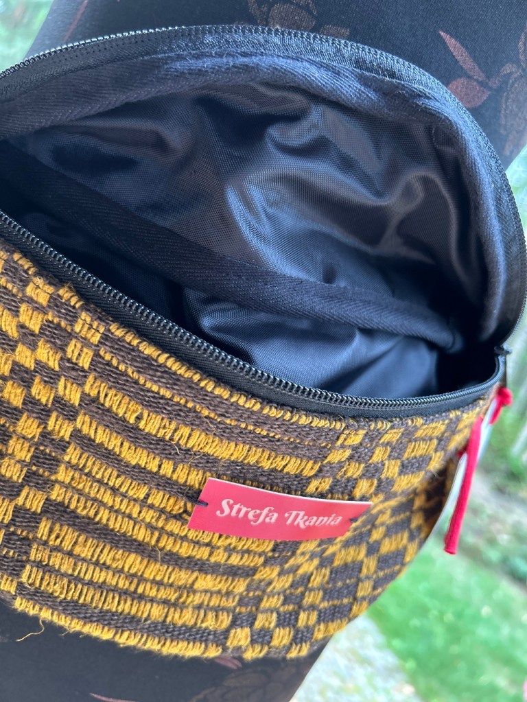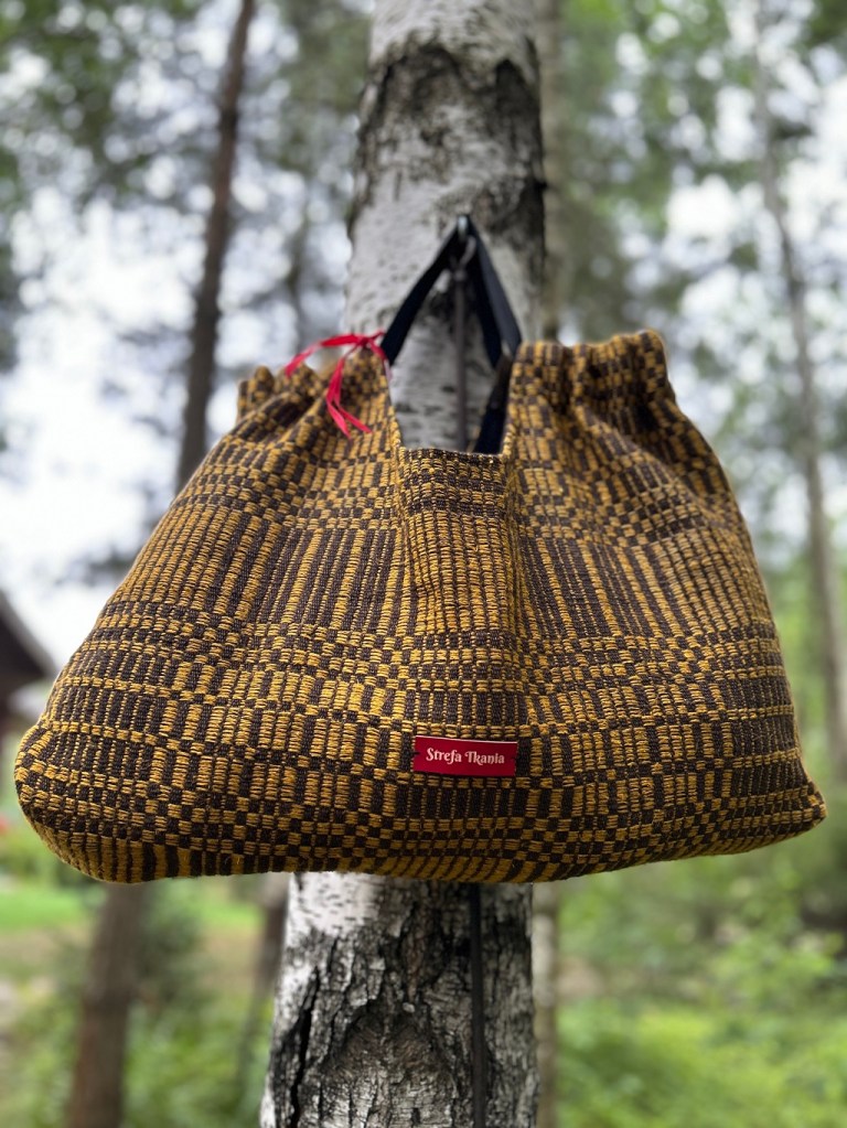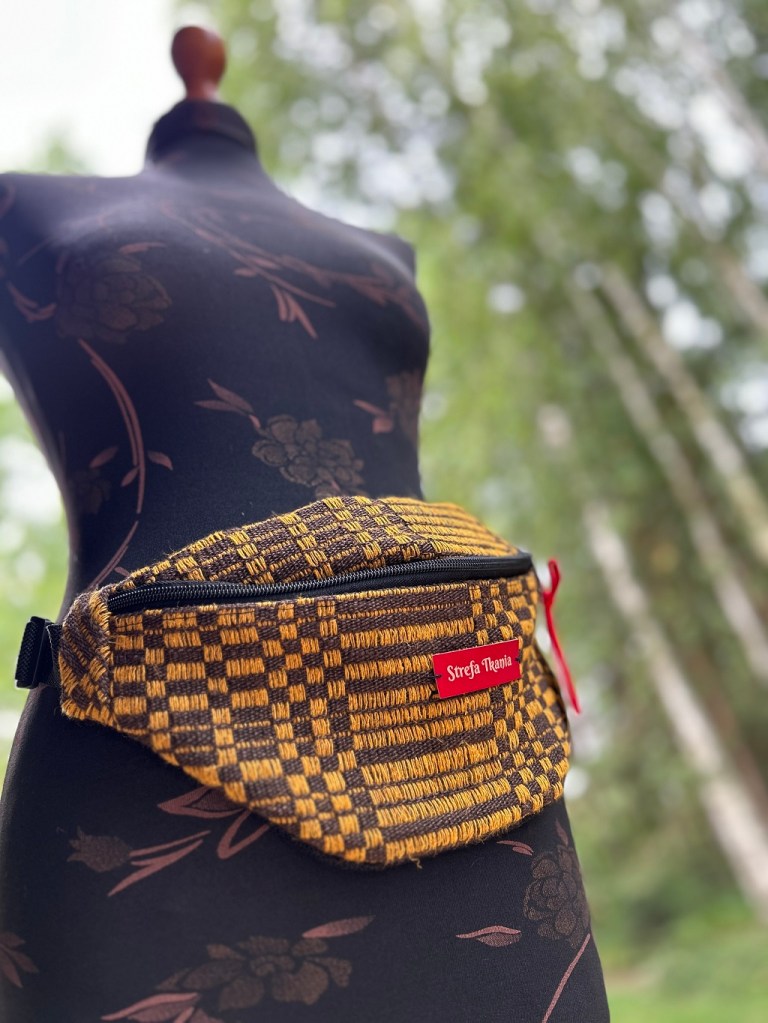 Tkanina ludowa wspaniale nadaje się do wykorzystania we współczesnych stylizacjach. Gruby len jest ponadczasowy, mocny i przyjemny w dotyku. Prezentowana torebka-„nerka” – czy zwana inaczej saszetką będzie idealna na spacery.