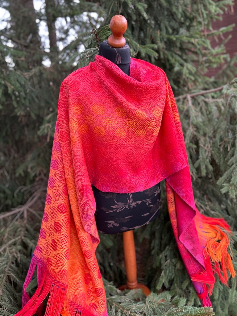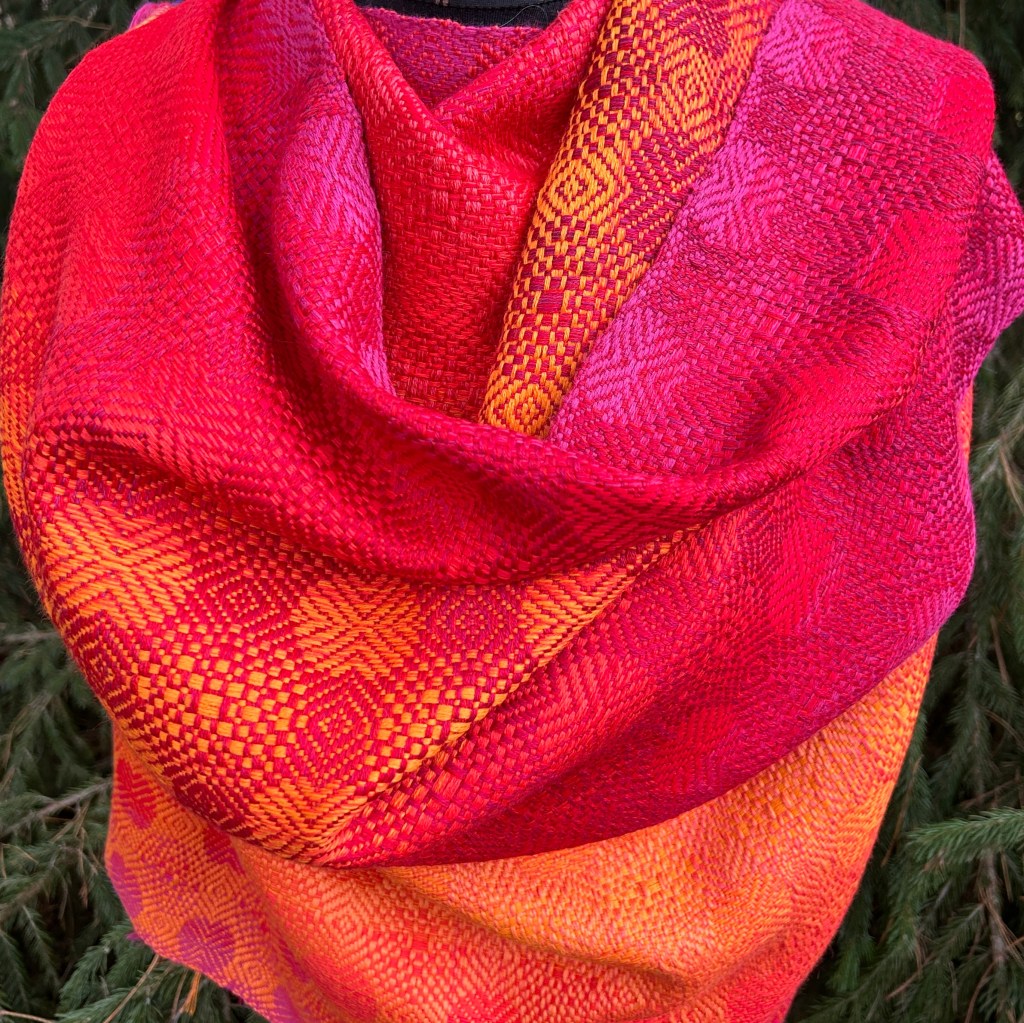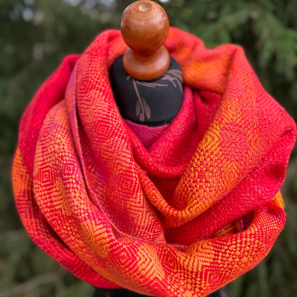 Szal Orangina to wyjątkowy, ręcznie tkany produkt, wykonany z najwyższej jakości wełny merynosów. Charakteryzuje się żywą, dynamiczną kompozycją barw– łączą się w nim ciepłe odcienie, takie jak intensywne żółcie, czerwienie i pomarańcze..
