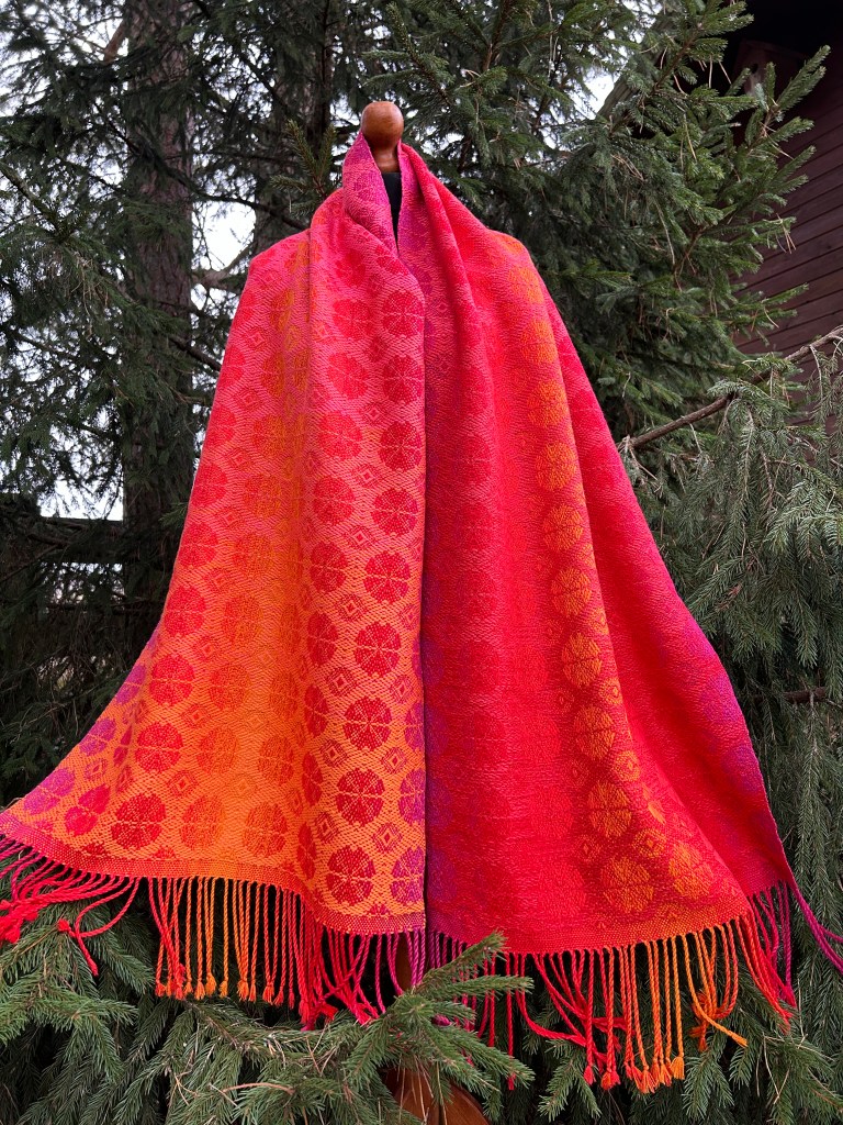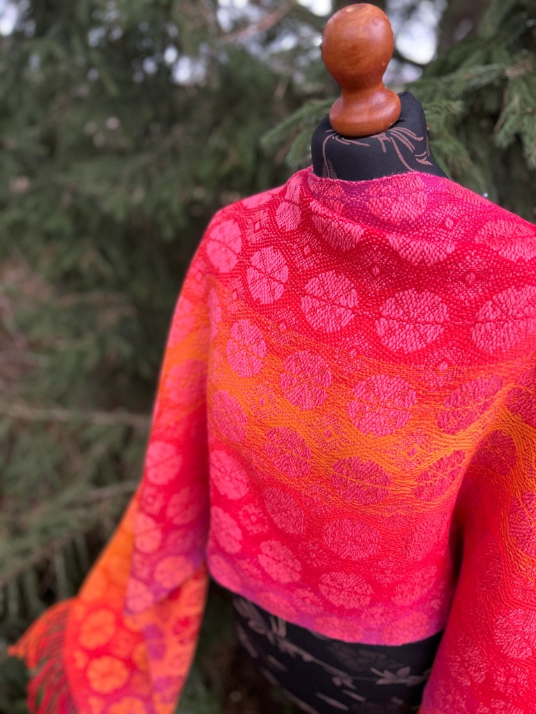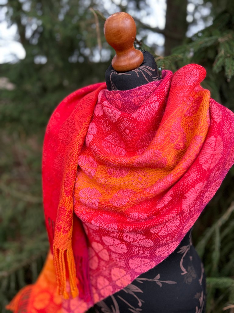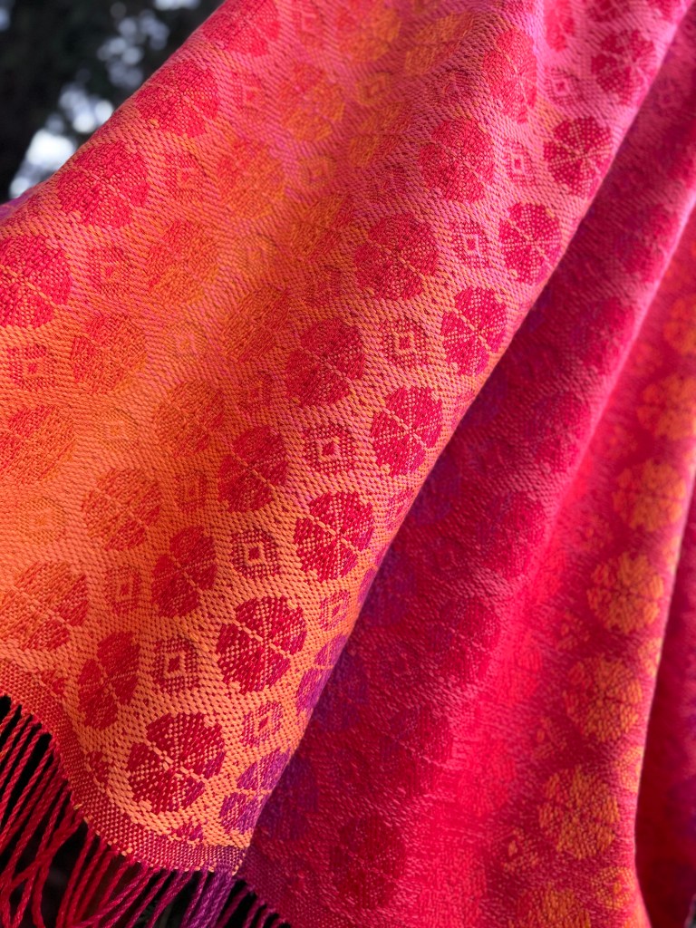 Szal Pamplemus to wyjątkowy, ręcznie tkany produkt, wykonany z najwyższej jakości wełny merynosów. Charakteryzuje się żywą, dynamiczną kompozycją barw– łączą się w nim ciepłe odcienie, takie jak intensywne żółcie, czerwienie i pomarańcze..