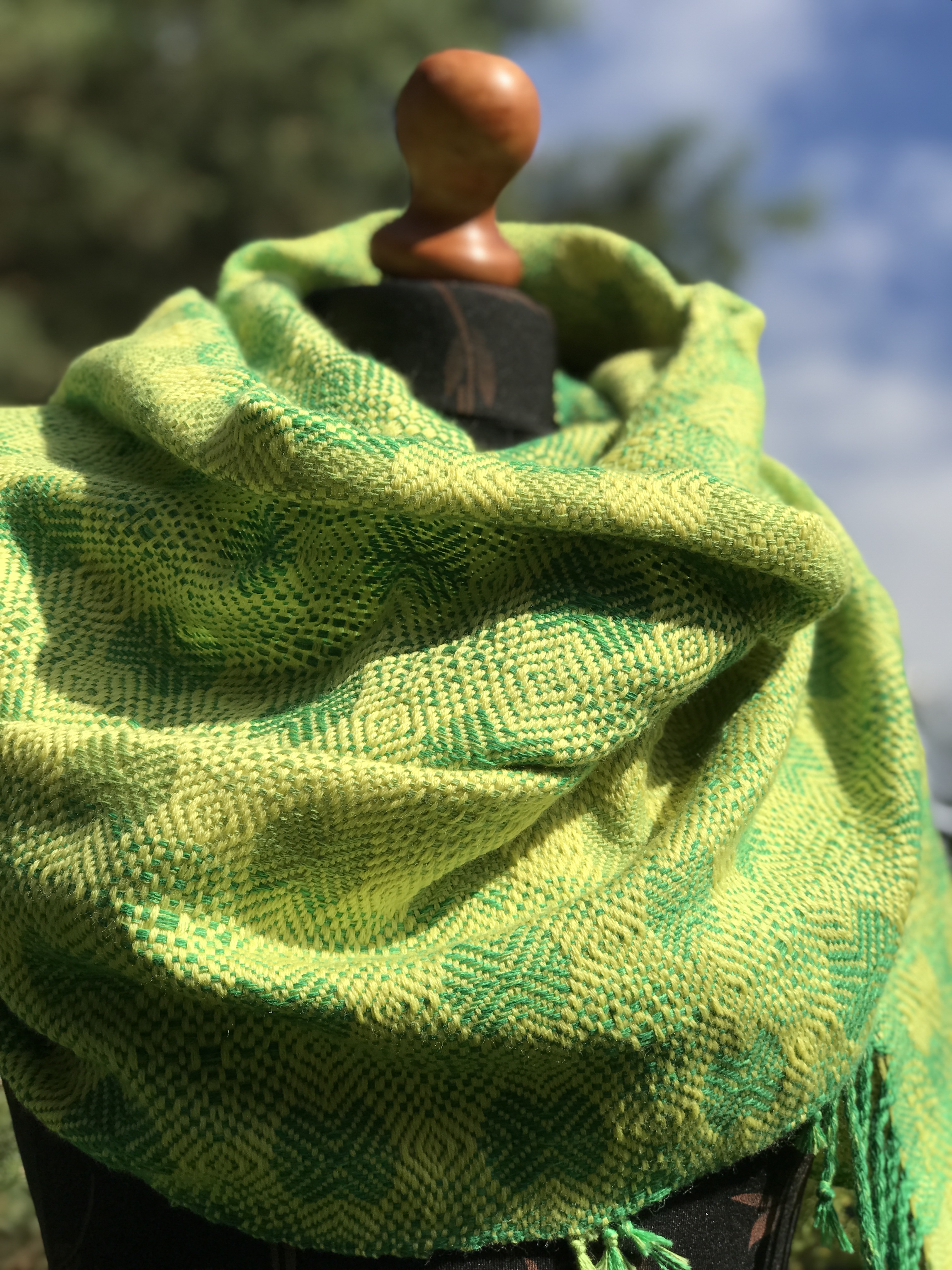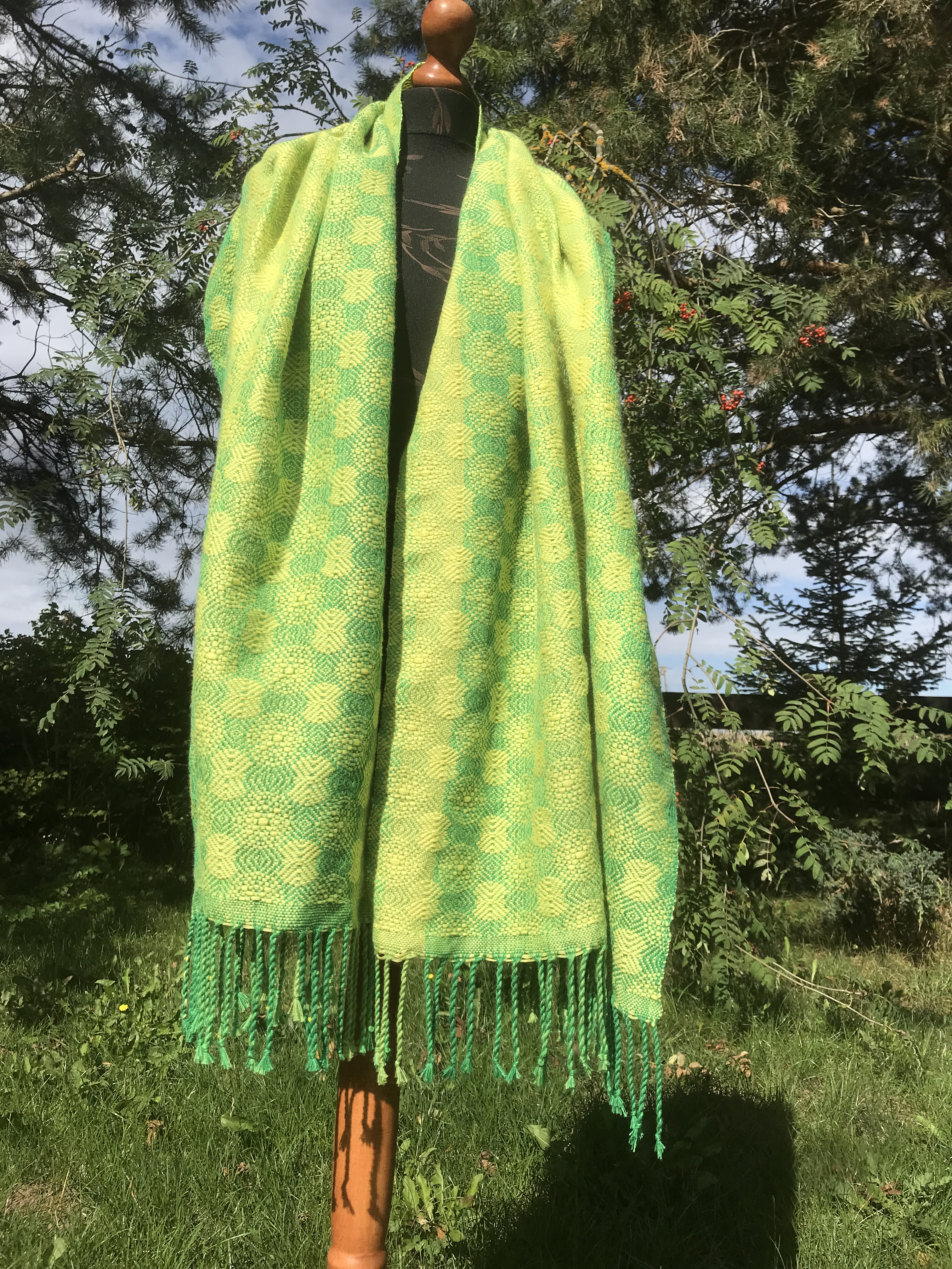 Lemongina to miękki szal z wełny merynos w kolorach limonkowym i cytrynowym. Dzięki swojej wełnianej strukturze zapewnia ciepło nawet w najchłodniejsze dni.