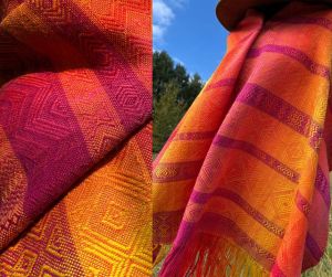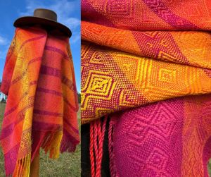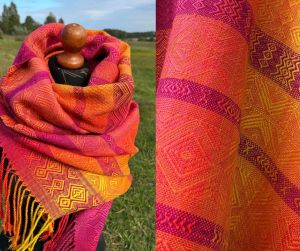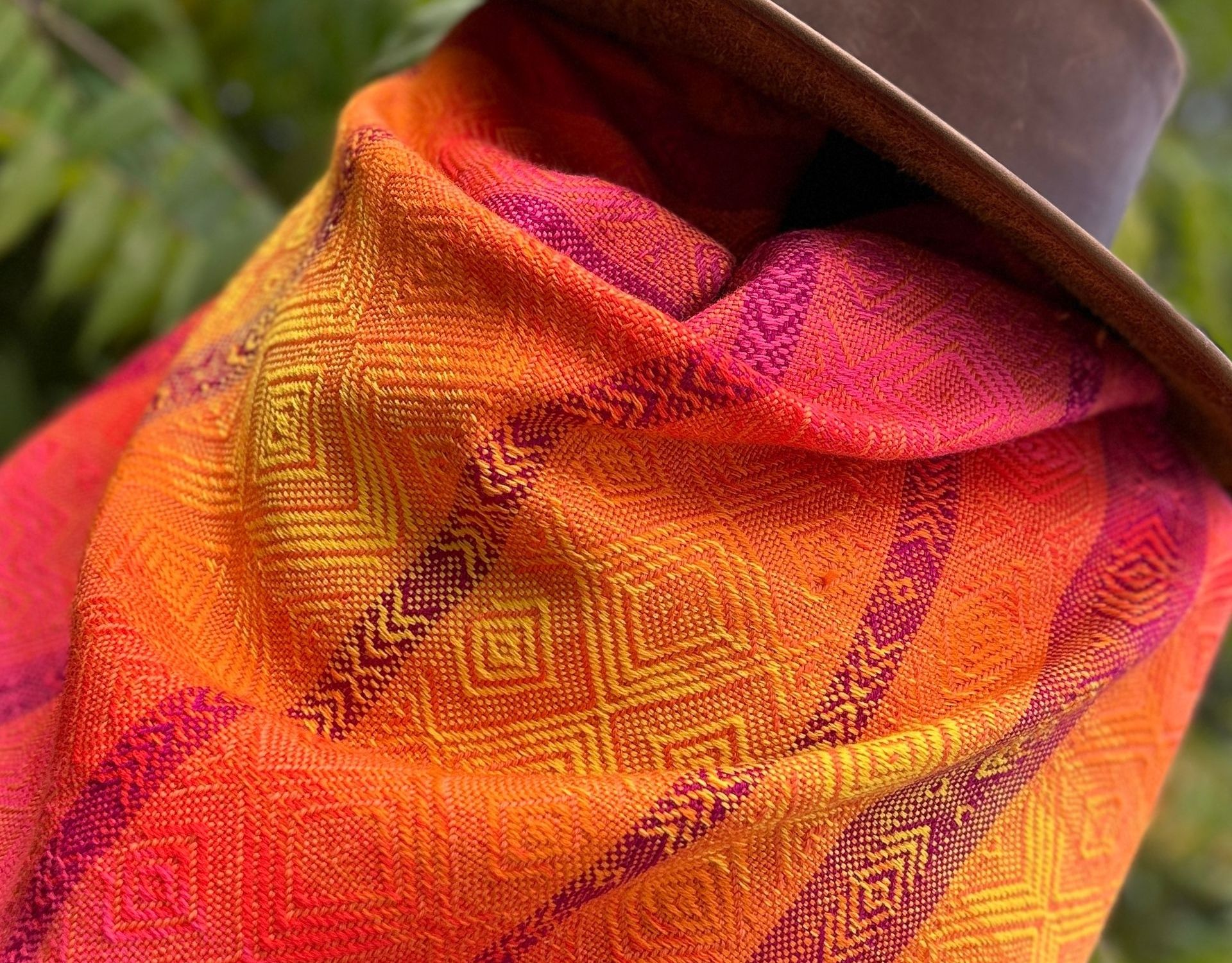 Słoneczny wiatr– wzór, który powraca w moich pracach, bo jego energia i świeżość są nie do zastąpienia. Ten szal to prawdziwy zastrzyk koloru i optymizmu – jak pełna witamin poranna dawka słońca.
