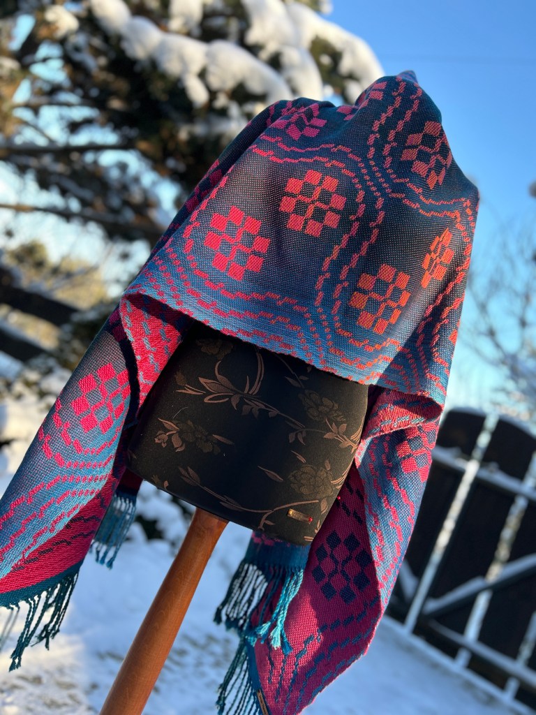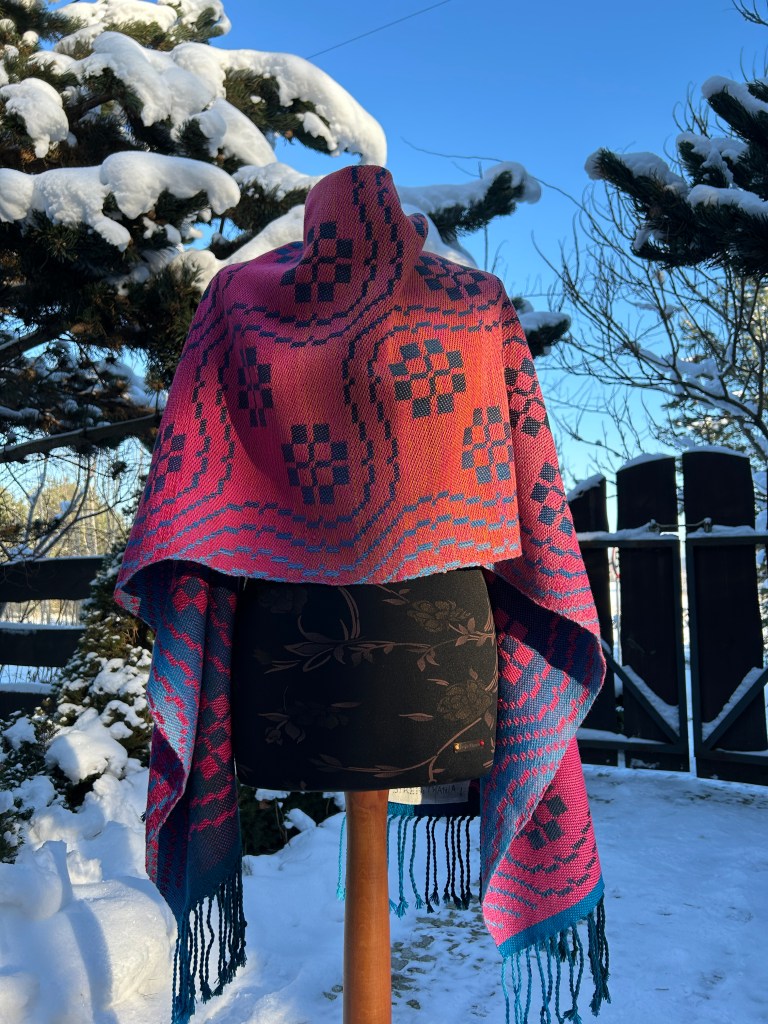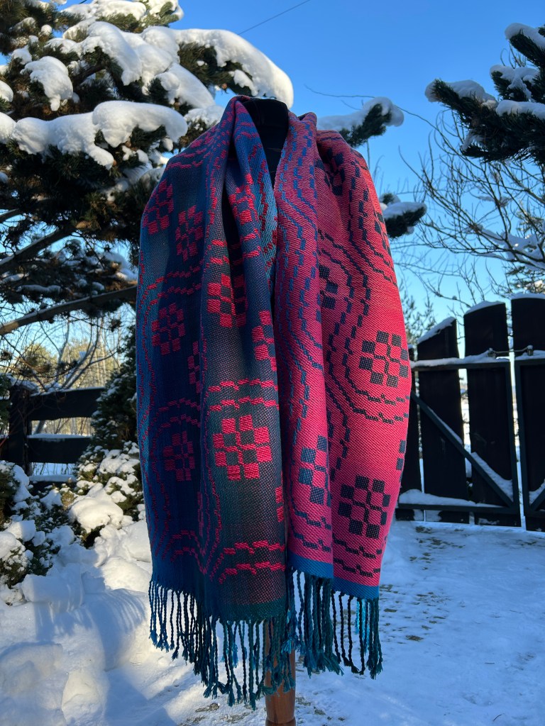 Wyjątkowy szal, który jest owocem wielogodzinnej pracy rąk i tradycyjnej techniki tkackiej. Został wykonany na ręcznych krosnach, co gwarantuje jego niepowtarzalny charakter i najwyższą jakość.