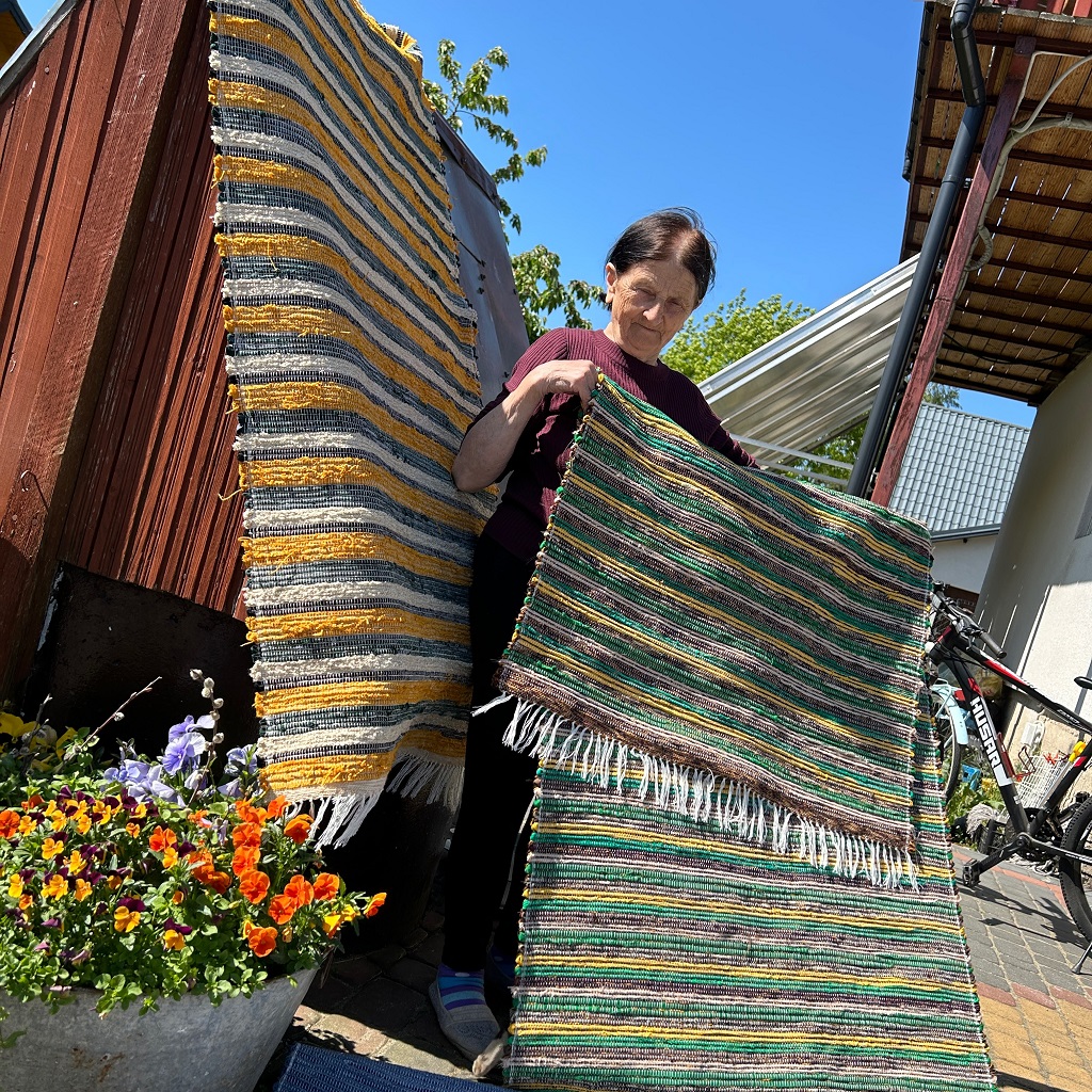 Decydując się na zakup ręcznie tkanego chodnika, wspierasz lokalnych twórców, którzy przekazują tradycję tkacką z pokolenia na pokolenie. To także forma docenienia ich pracy i pasji, która kryje się za każdym produktem. Oto prace Pani Donaty, która chodnniki tka całe swoje życie: