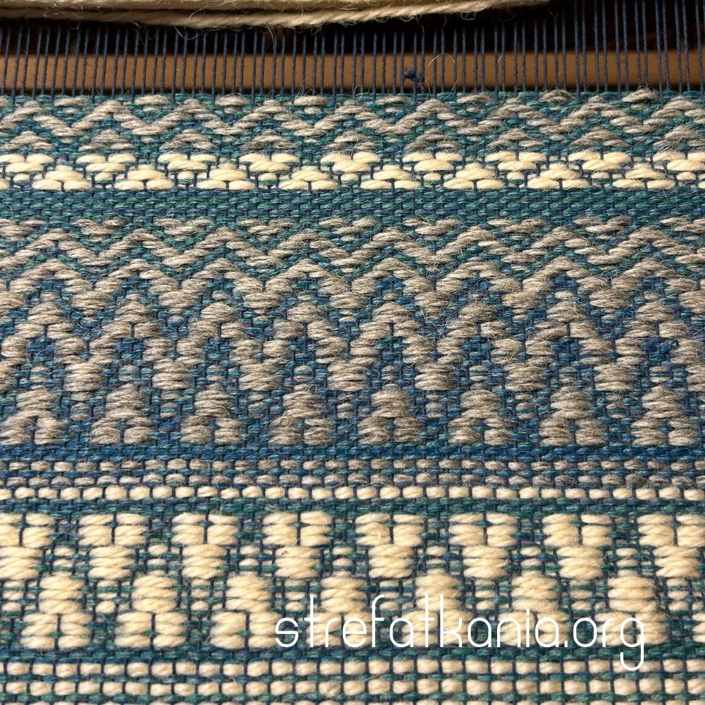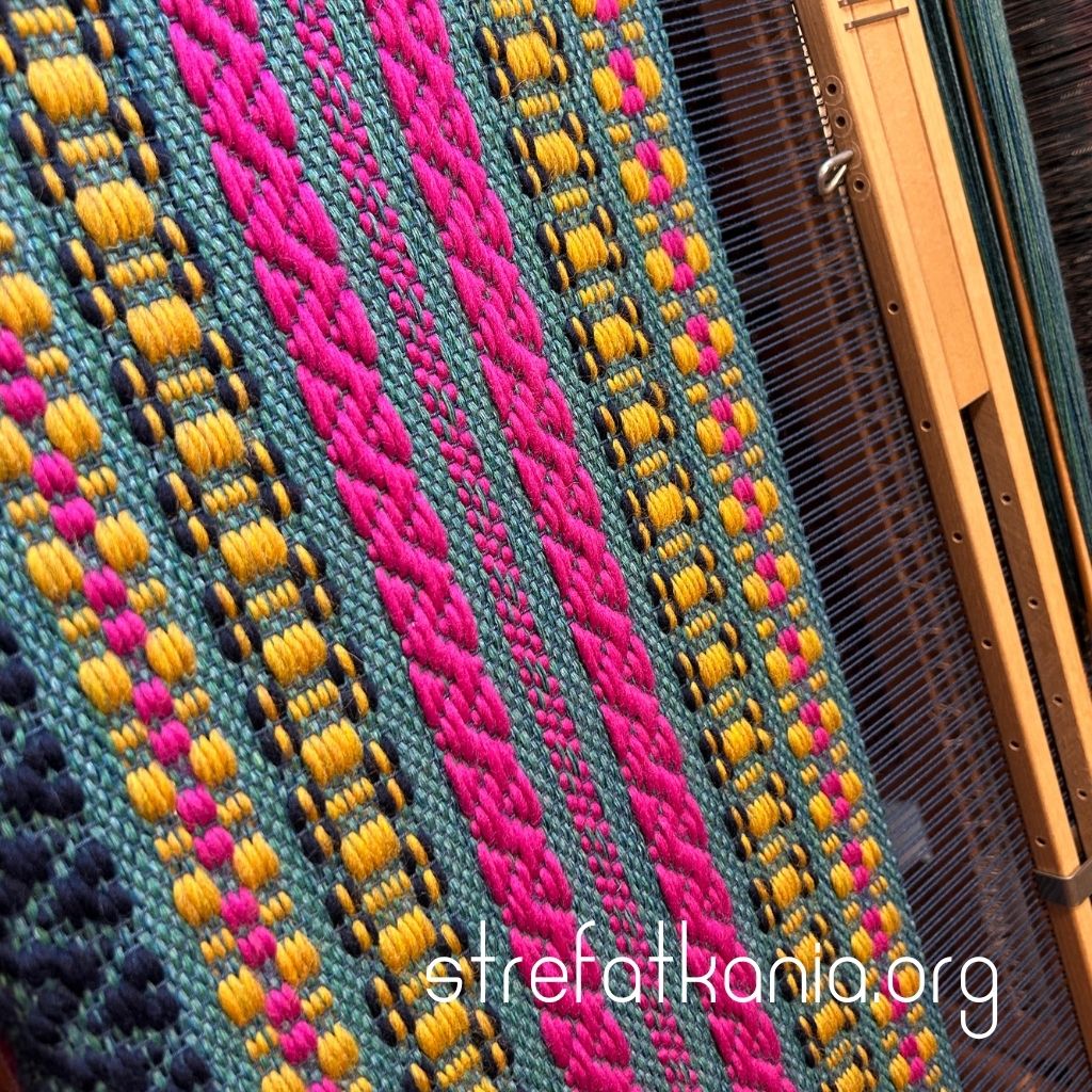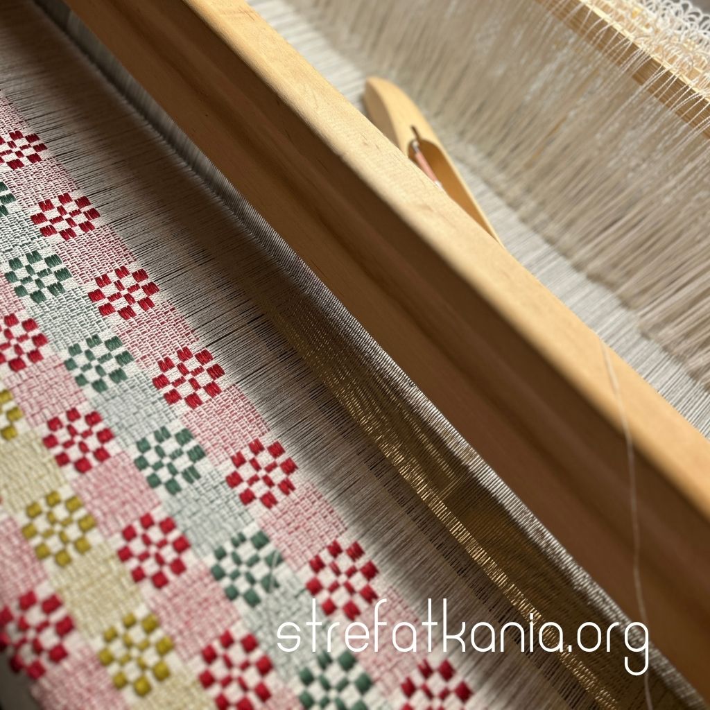 Teoria to jednak tylko połowa sukcesu – prawdziwa magia splotu overshot zaczyna się przy krosnach. Podczas warsztatów, które prowadzę w Centrum Rękodzieła Ludowego w Niemczynie, technika ta cieszy się ogromnym uznaniem.