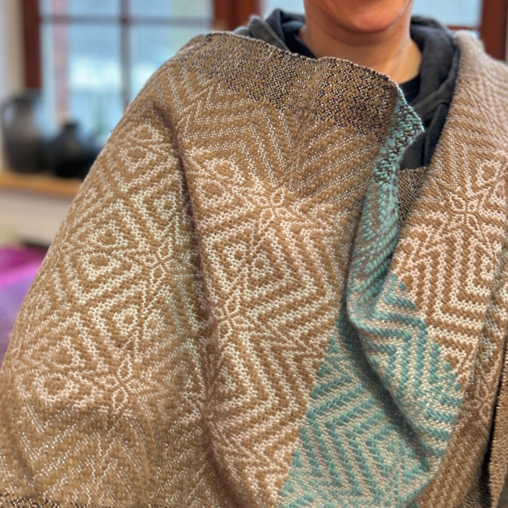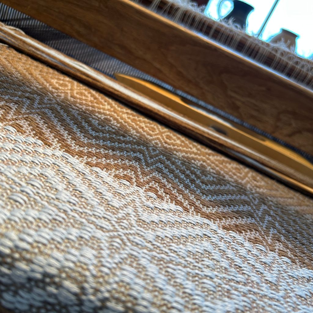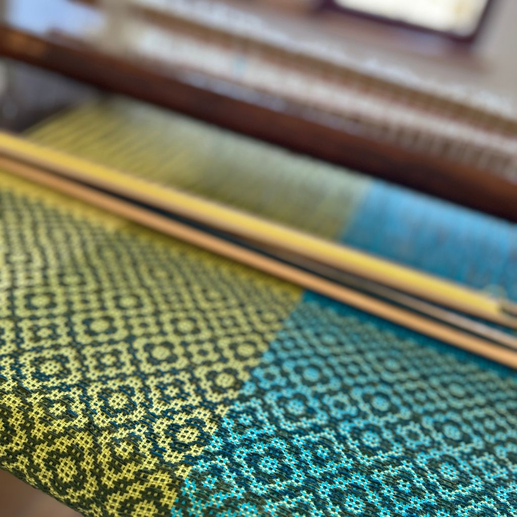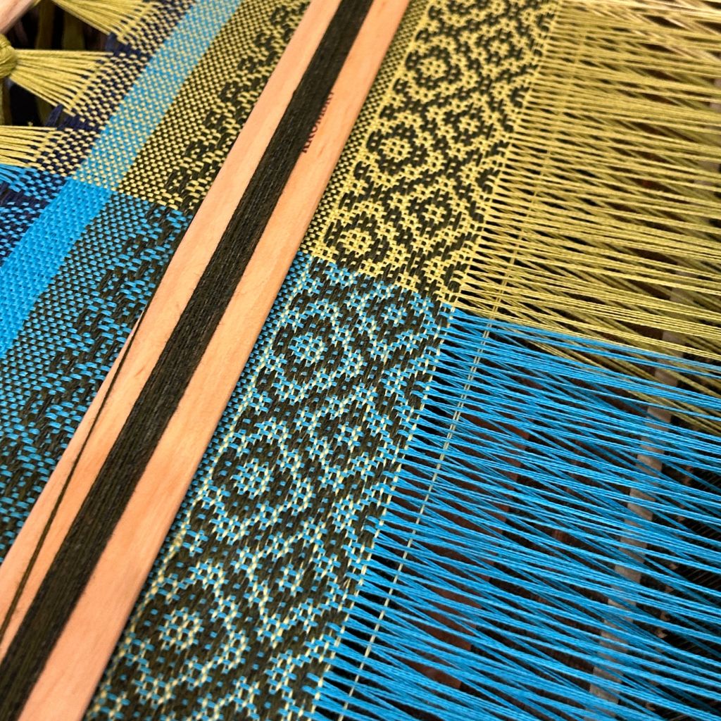 Teoria to jednak tylko połowa sukcesu – prawdziwa magia splotu overshot zaczyna się przy krosnach. Podczas warsztatów, które prowadzę w Centrum Rękodzieła Ludowego w Niemczynie, technika ta cieszy się ogromnym uznaniem.