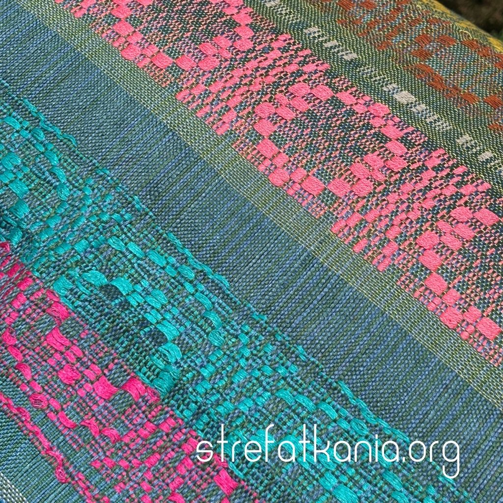 Warto podkreślić, że splot overshot ma swoje silne korzenie w polskim tkactwie ludowym, szczególnie na Podlasiu. Mowa o radziuszce – tradycyjnej tkaninie wielonicielnicowej. Choć nazwa brzmi swojsko, technicznie opiera się ona właśnie na zasadzie naddatkowego wątku wzorzystego, który tworzy charakterystyczne, geometryczne motywy „kostek” i „gwiazd”. Radziuszka to doskonały przykład na to, jak overshot pozwala na budowanie niezwykle trwałych, a zarazem dekoracyjnych tkanin, które przez pokolenia zdobiły polskie domy w formie kap, obrusów czy ręczników obrzędowych.
