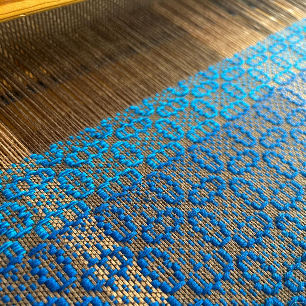 Mówiąc najprościej, technika ta polega na tworzeniu wzorów naddatkowych, które „pływają” nad podstawową strukturą tkaniny. Podczas gdy osnowa i cienki wątek wiążący (tzw. tabby) pracują nad stabilnością materiału, gruby wątek wzorzysty (overshot) tworzy dekoracyjne pętle i geometryczne motywy, które wydają się być nałożone na wierzch tkaniny.
