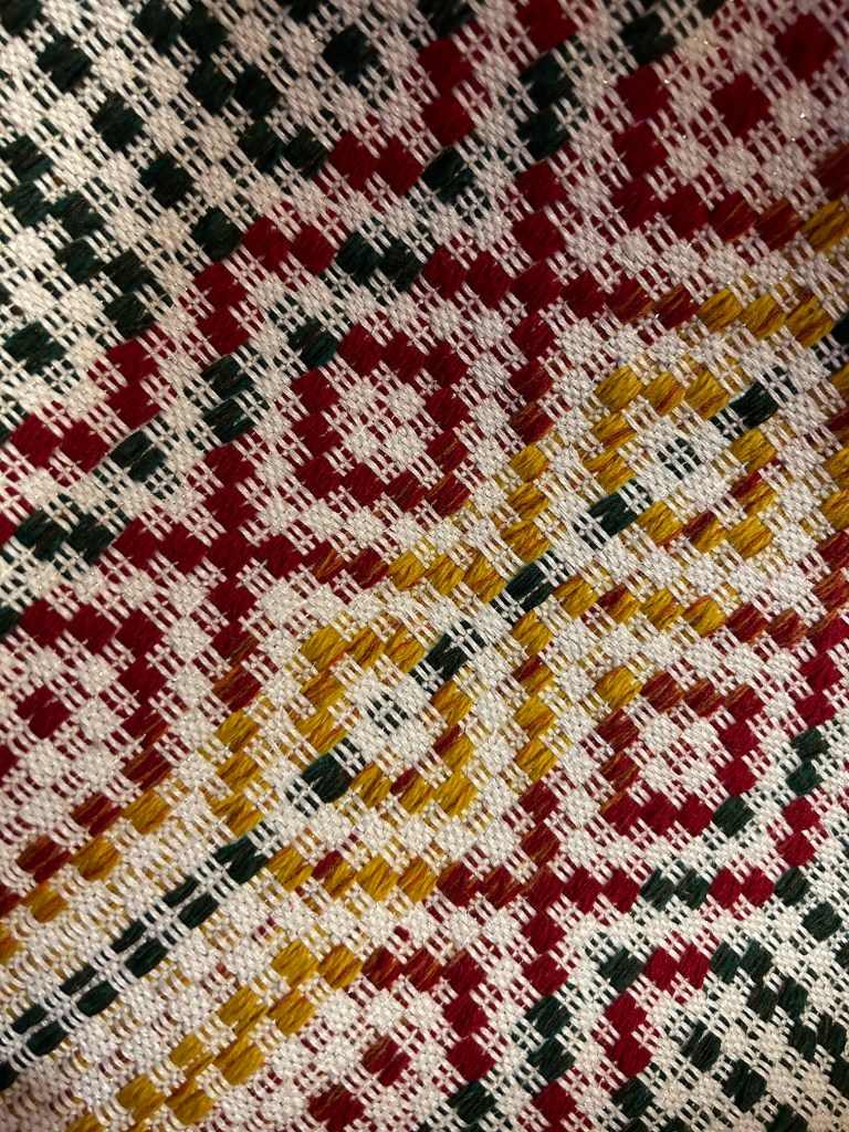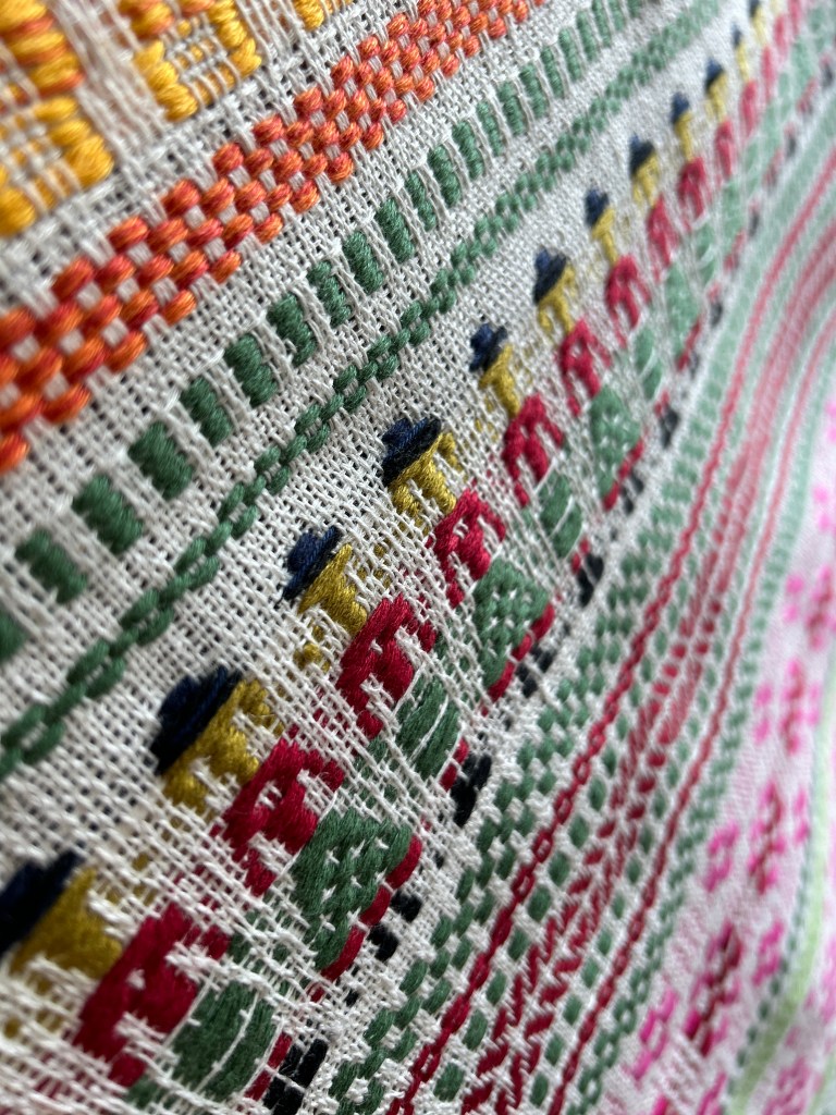 Charakteryzuje się graficznym ornamentem. Wątek dzieli się na wątek zdobiniczy, który tworzy ornament i „podetkę” – płótno pełniące rolę pomocniczą, które wiąże tkaninę.