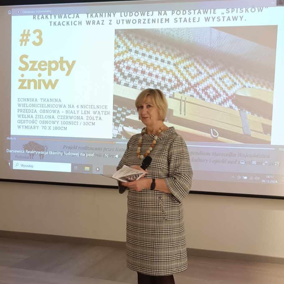 W ramach stypendium powstanie pięć tkanin ludowych (radziuszka), które będą nawiązywać do kultury i tradycji Podlasia. Przekazane zostaną do Centrum Rękodzieła Ludowego w Niemczynie w celu utworzenia tam stałej ekspozycji. Obecnie w centrum znajdują się piękne eksponaty tj. rzeźba ludowa, wyroby garncarskie, kute. Jednakże pomimo, iż znajduje się tam pracownia tkacka, nie ma ekspozycji złożonej z tkanin ludowych.